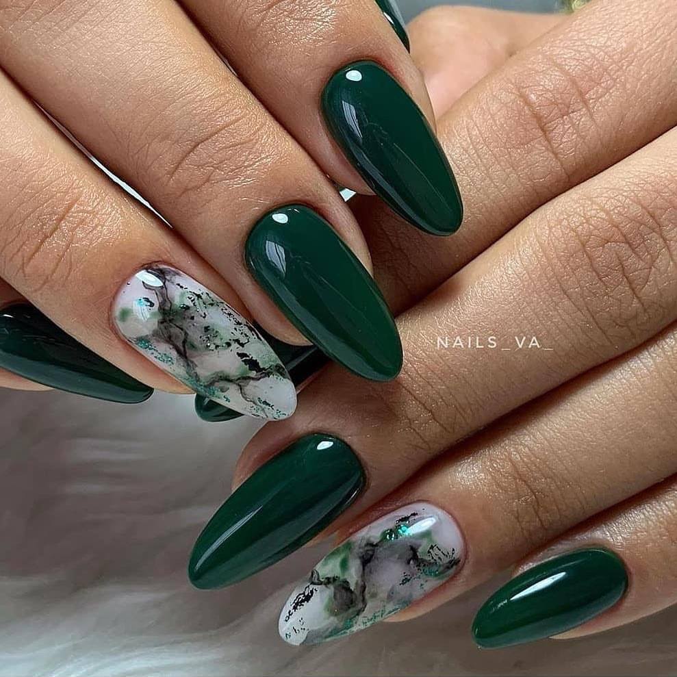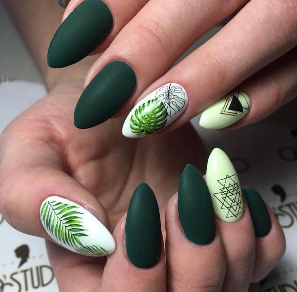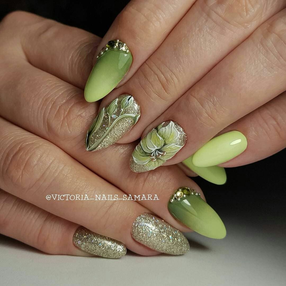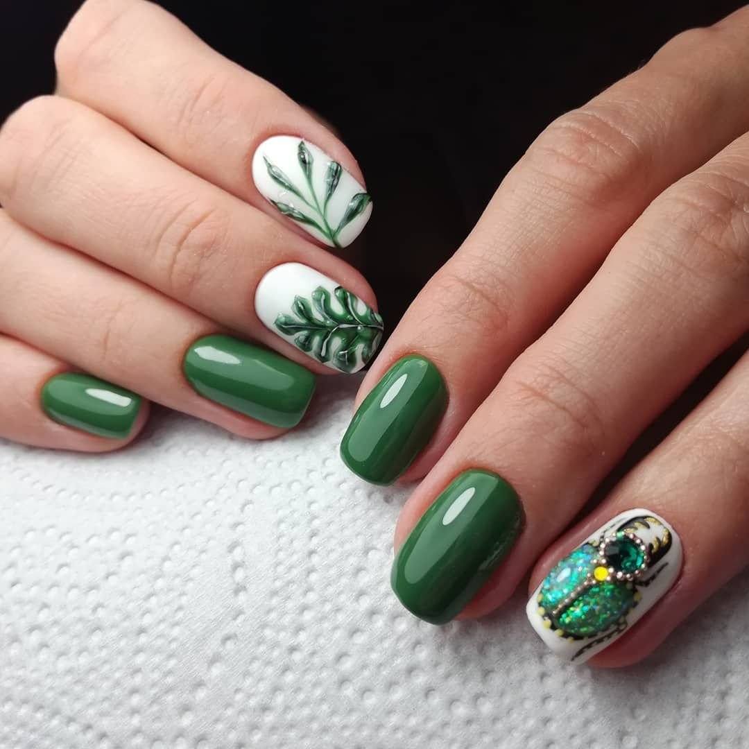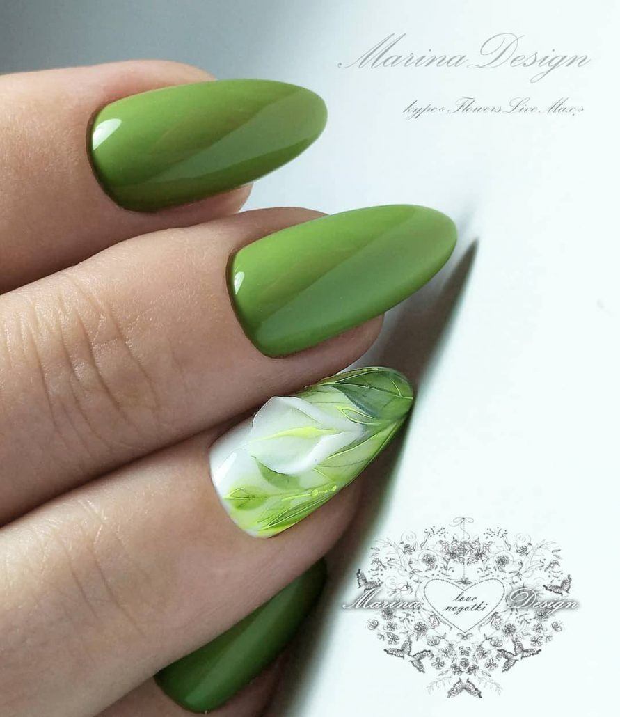 Зелёный маникюр с дизайном для разной формы и длины ногтей