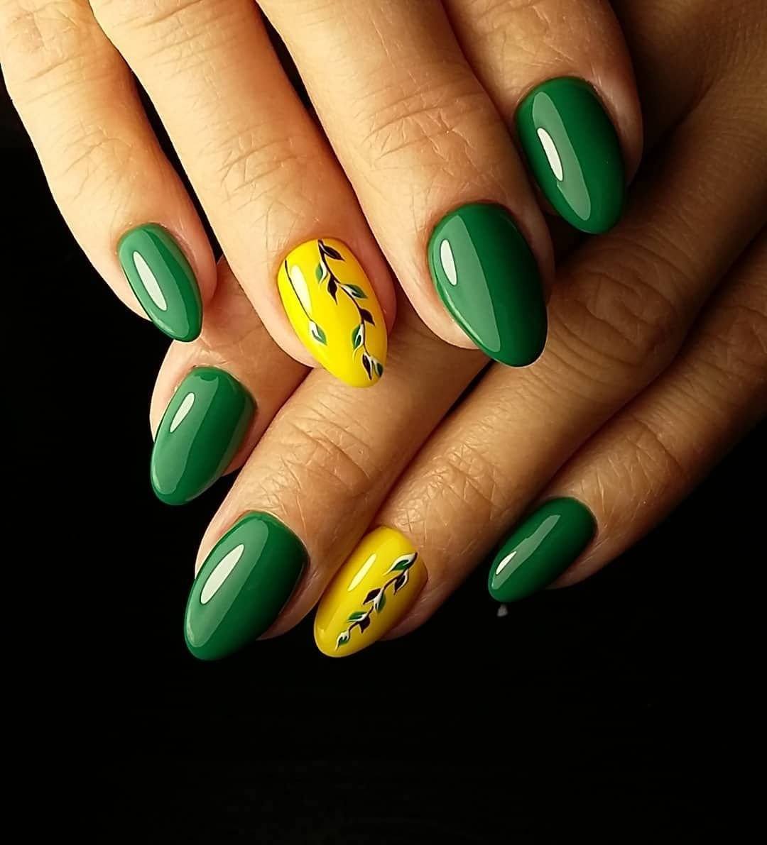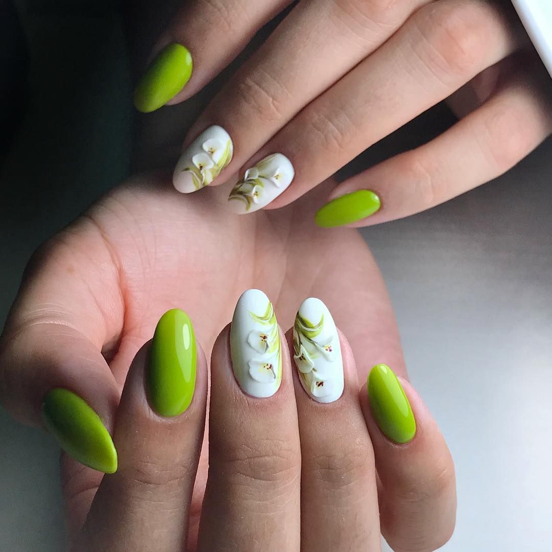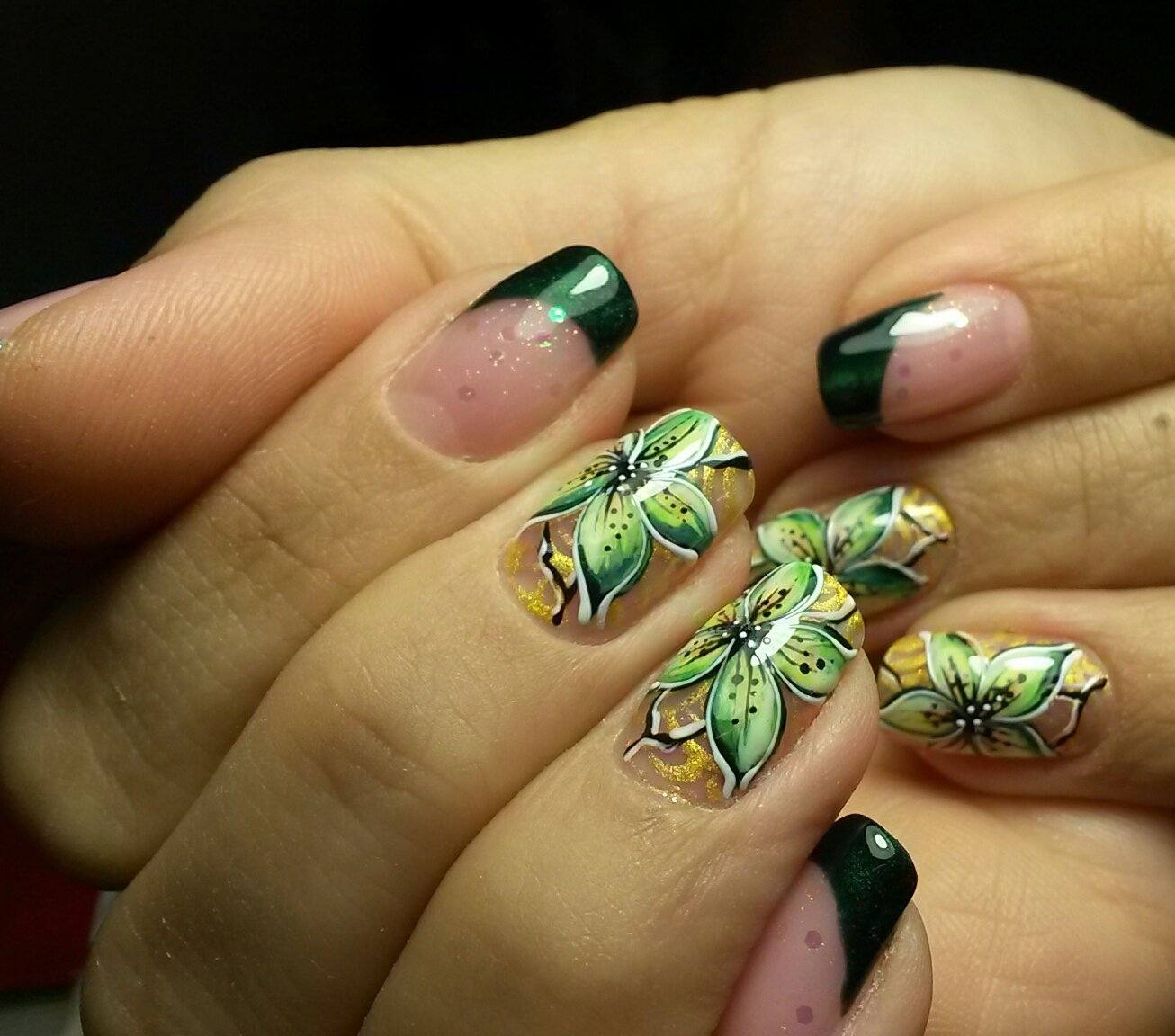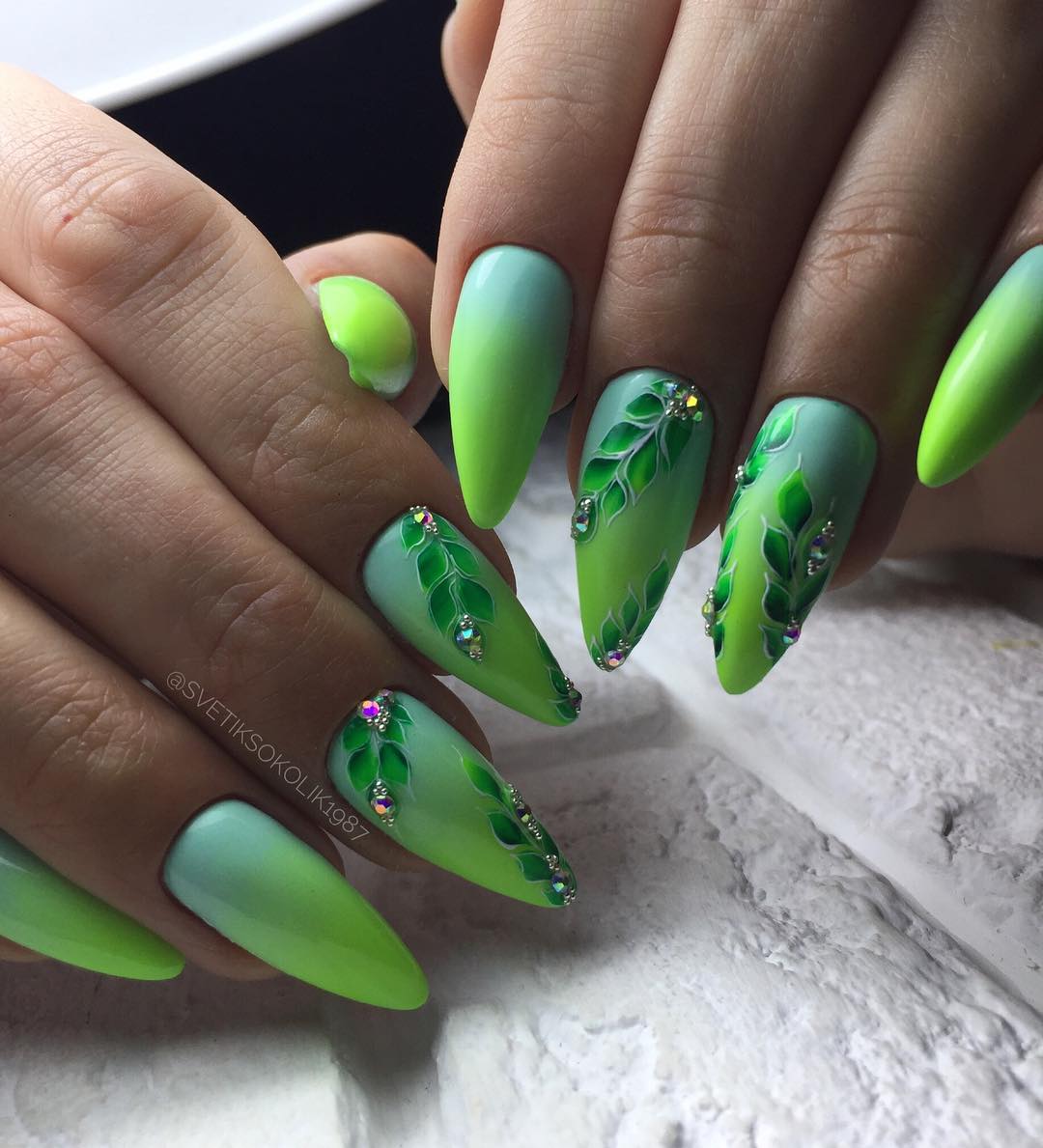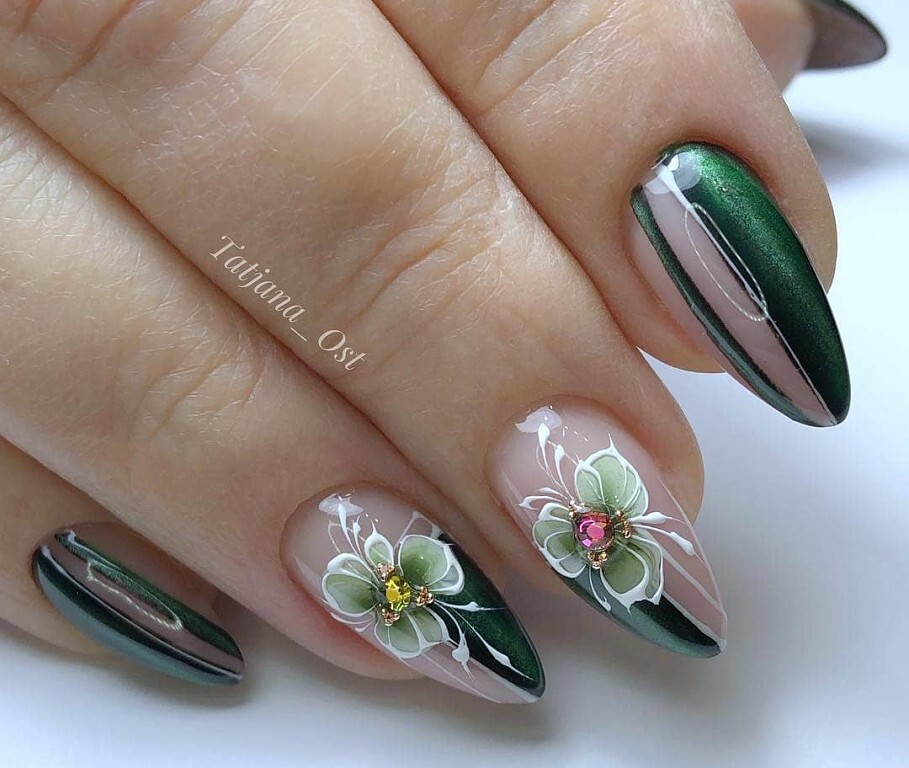 Зелёный маникюр с дизайном для разной формы и длины ногтей