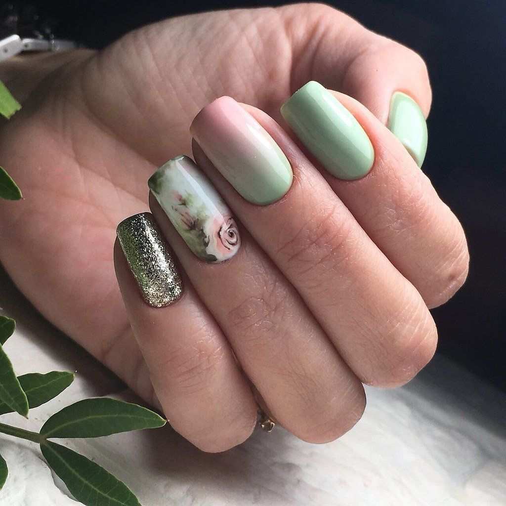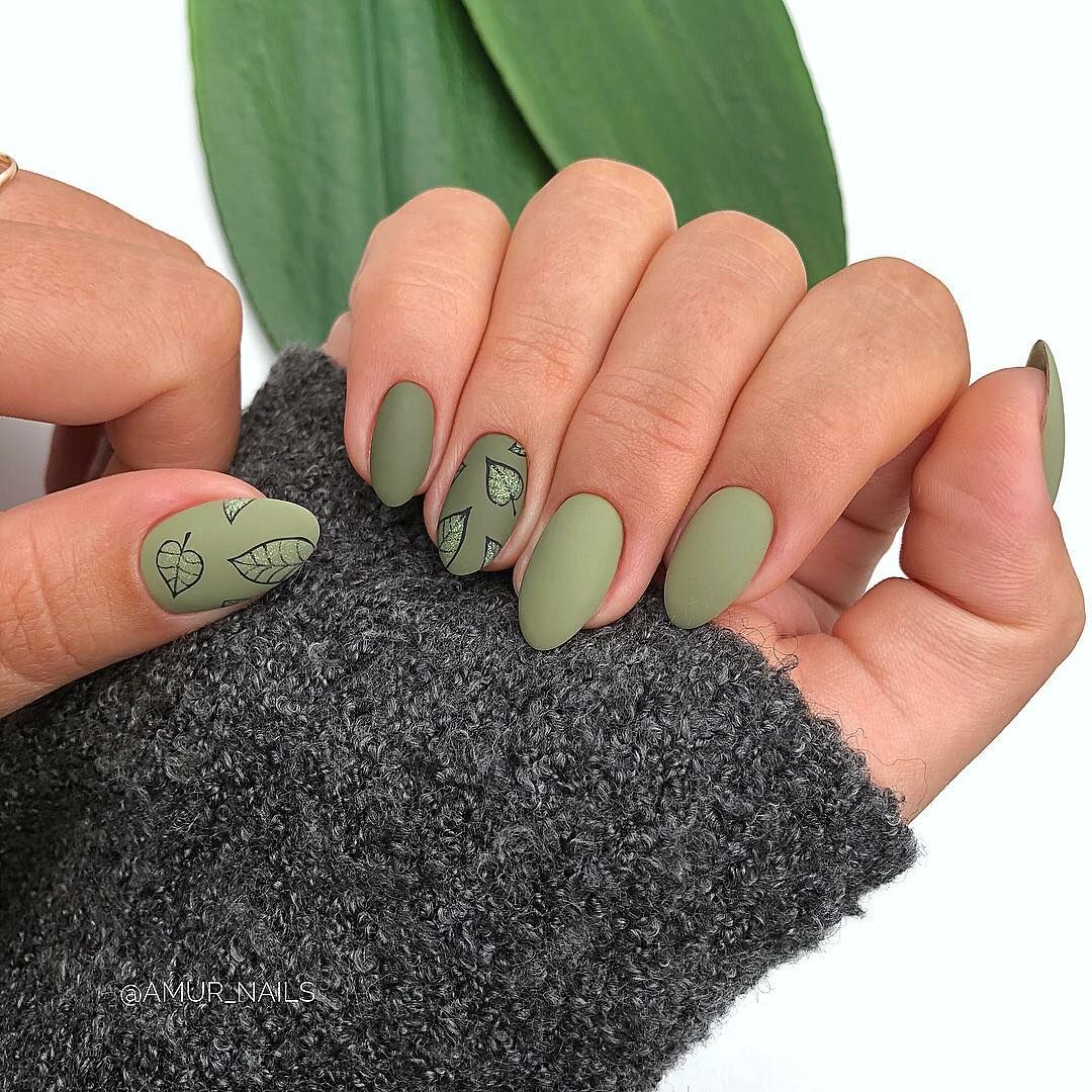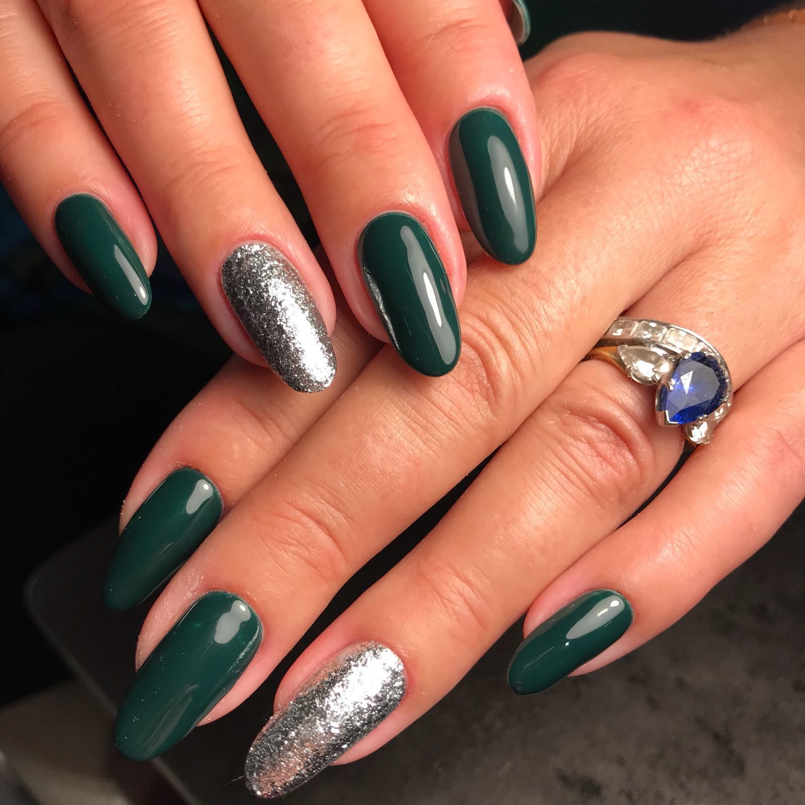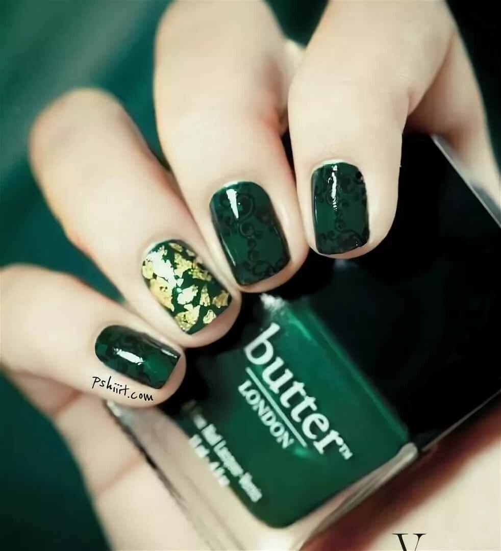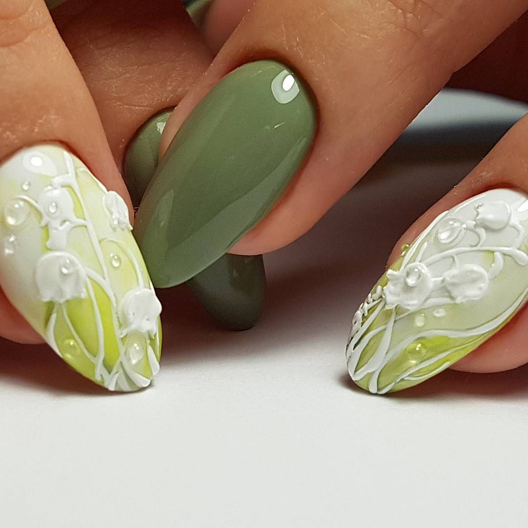 Зелёный маникюр с дизайном для разной формы и длины ногтей