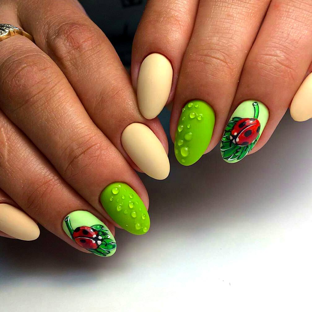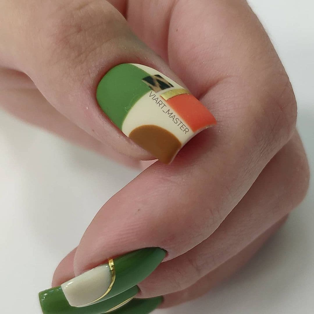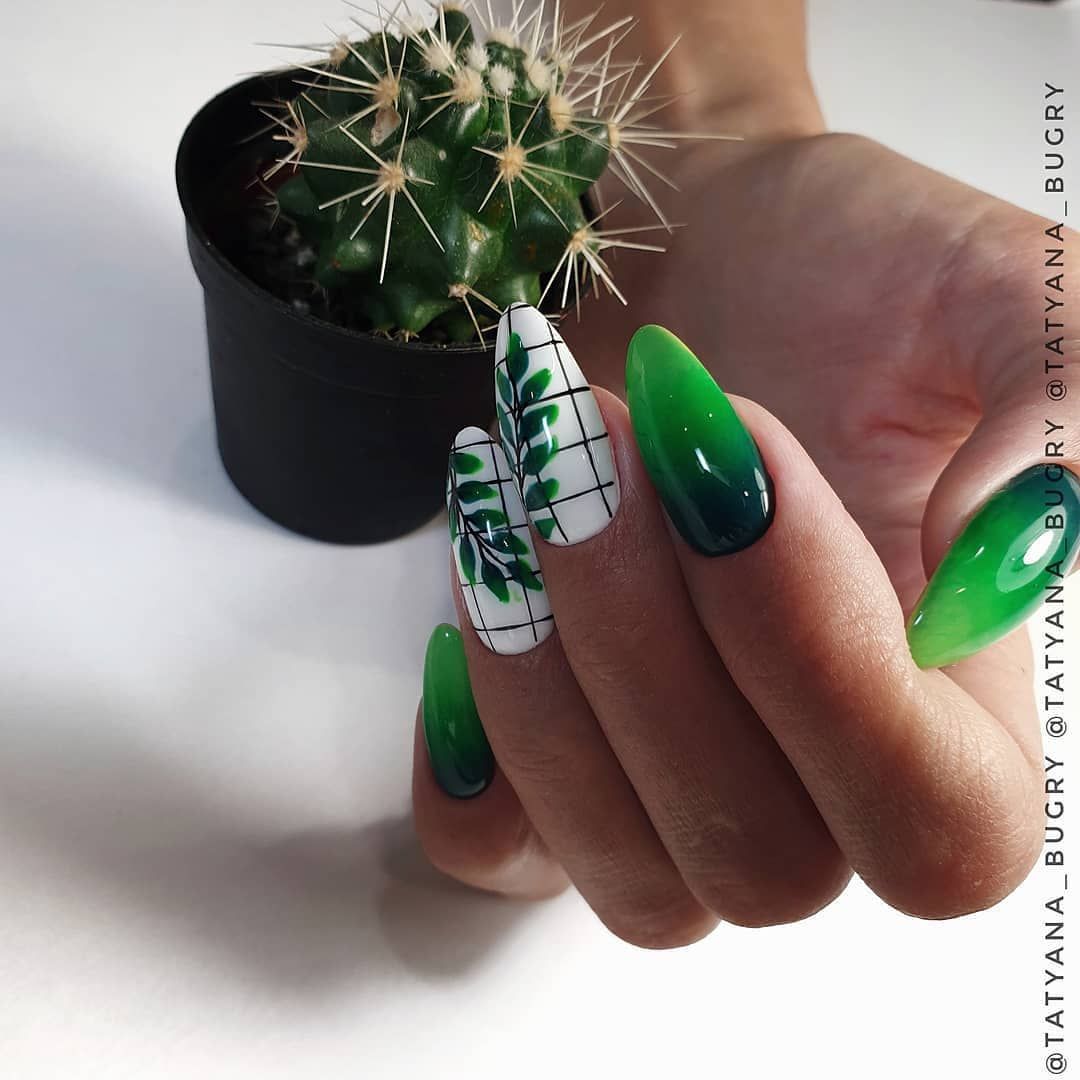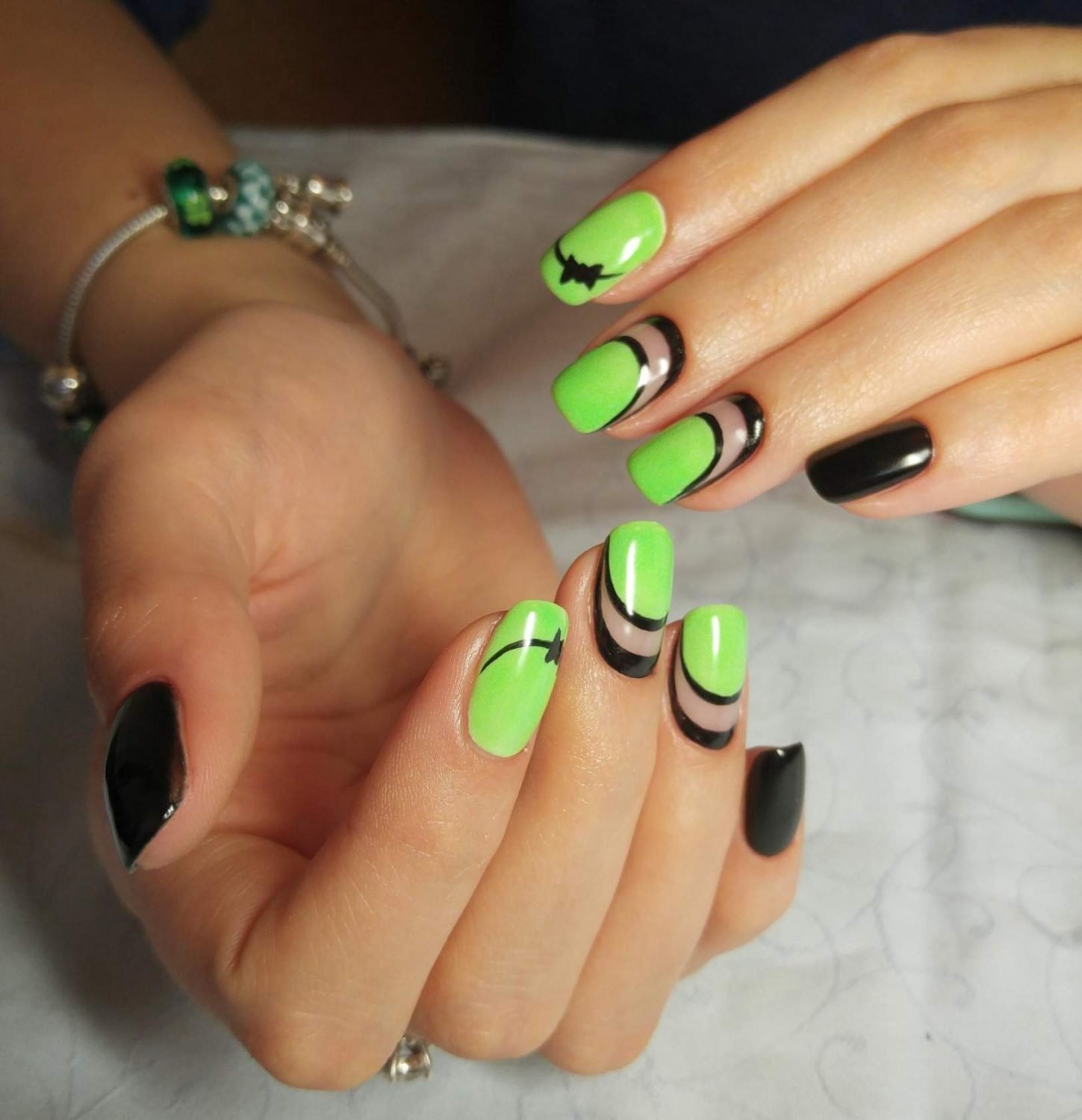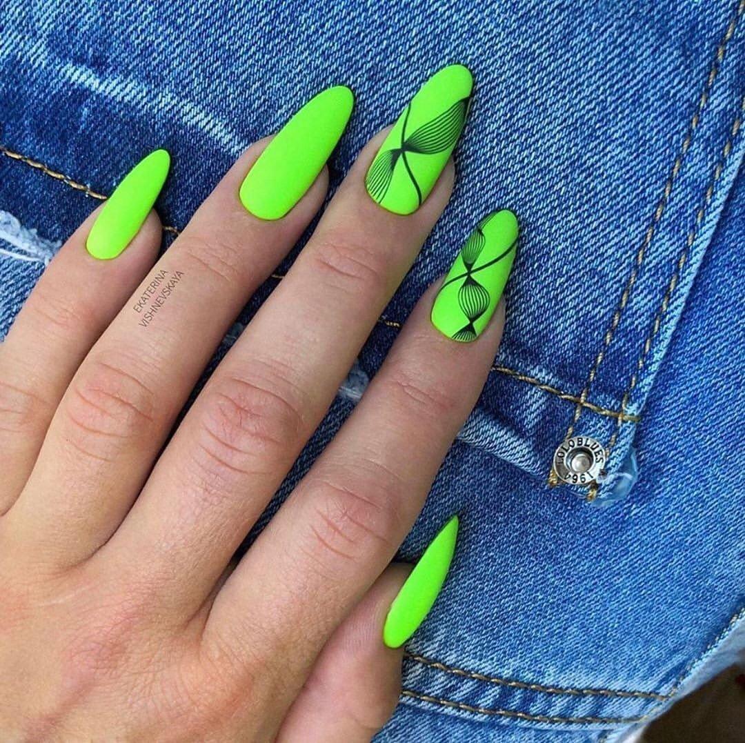 Зелёный маникюр с дизайном для разной формы и длины ногтей