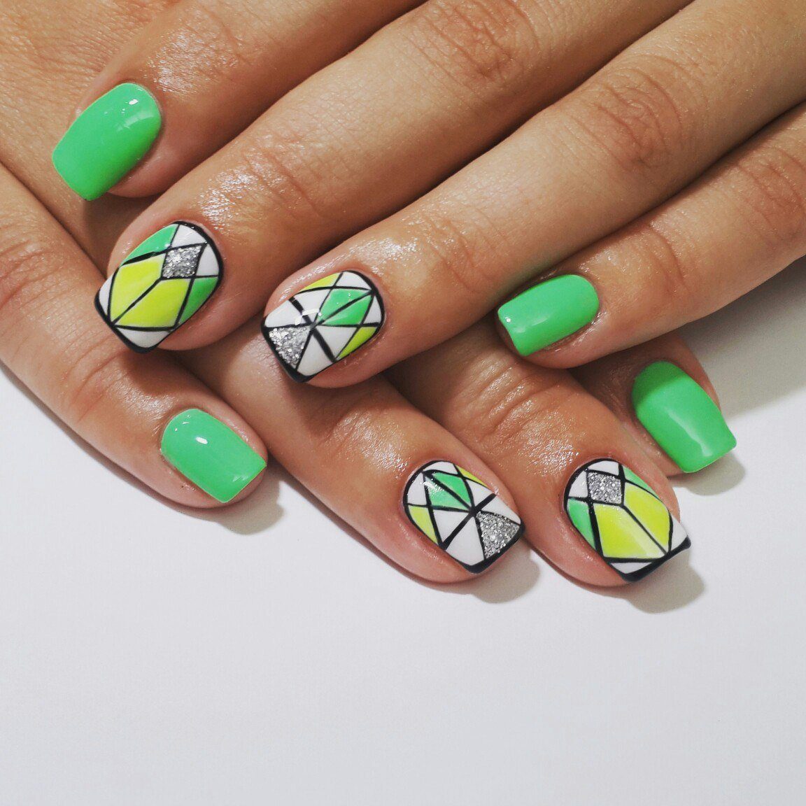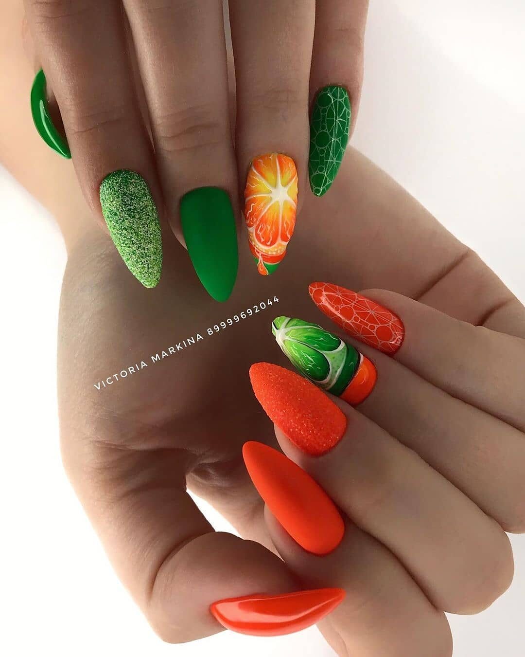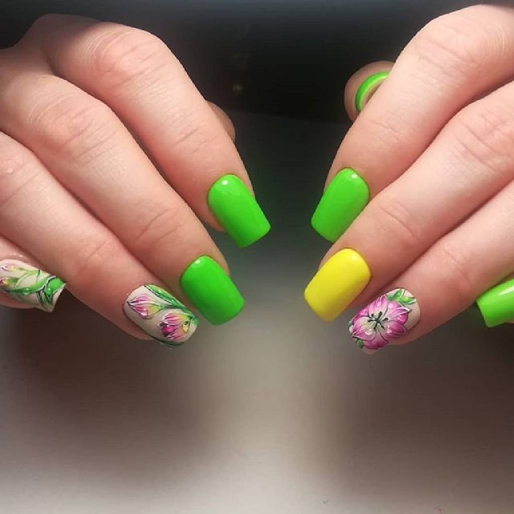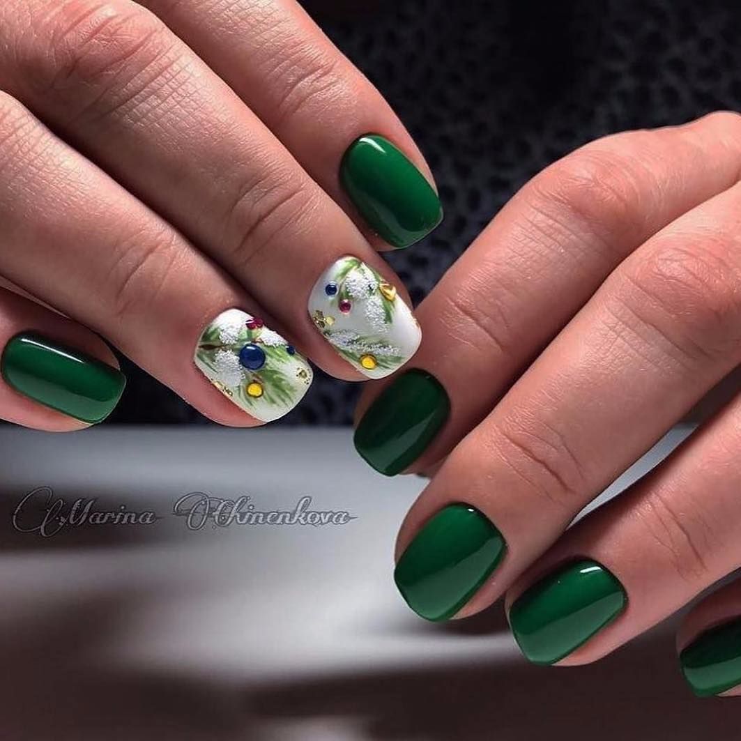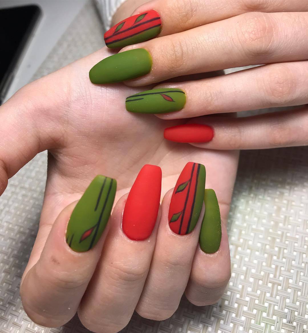 Зелёный маникюр с дизайном для разной формы и длины ногтей