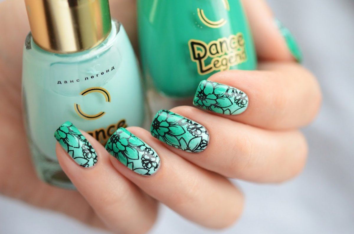 Зеленые рисунки на ногтях по-прежнему актуальны. Выполняются с помощью стемпинга или специальных наклеек, либо же тонкой кистью вручную. Листья, змеи, цветы и геометрические орнаменты — лучшие рисунки на зеленых ногтях.