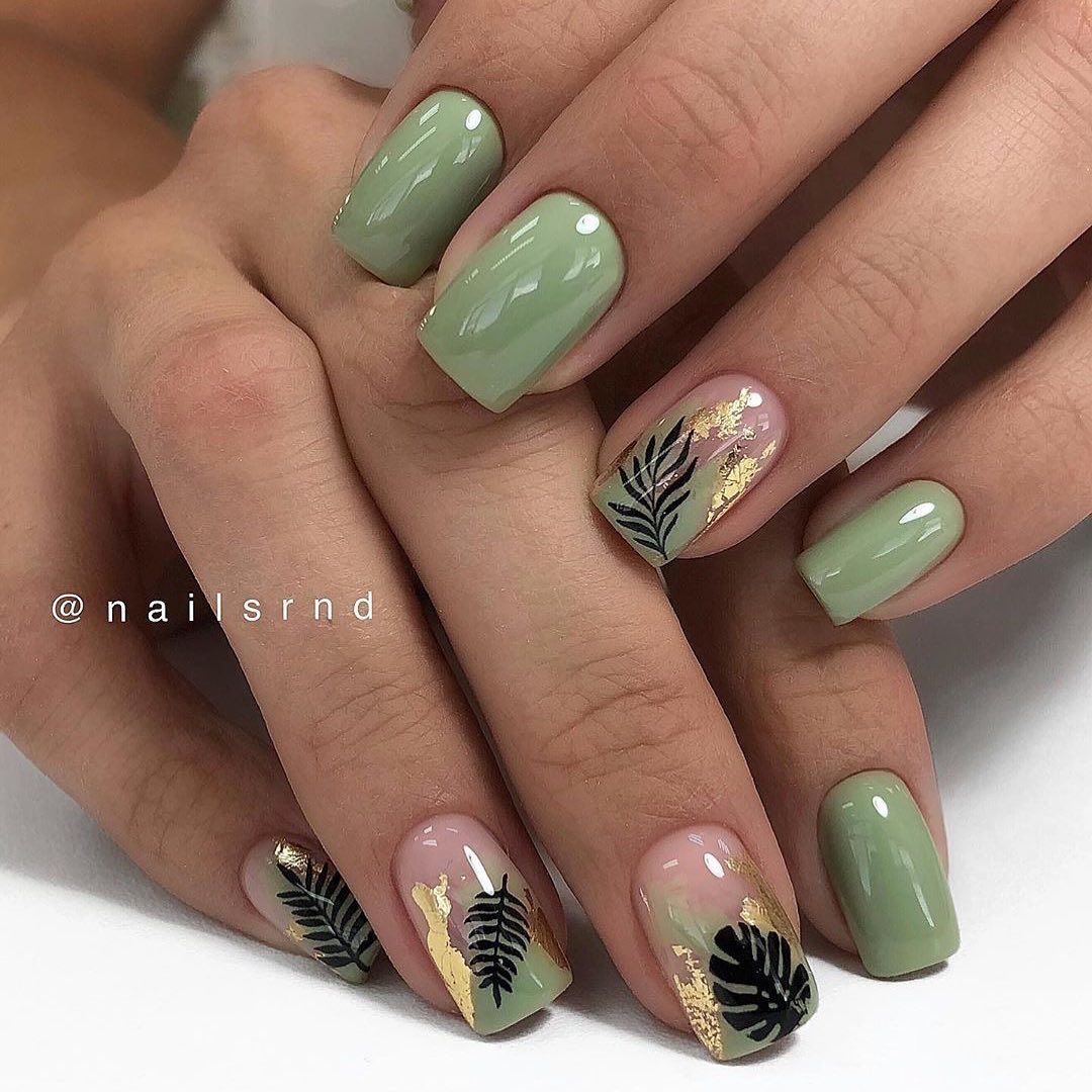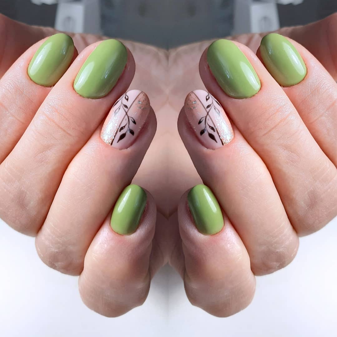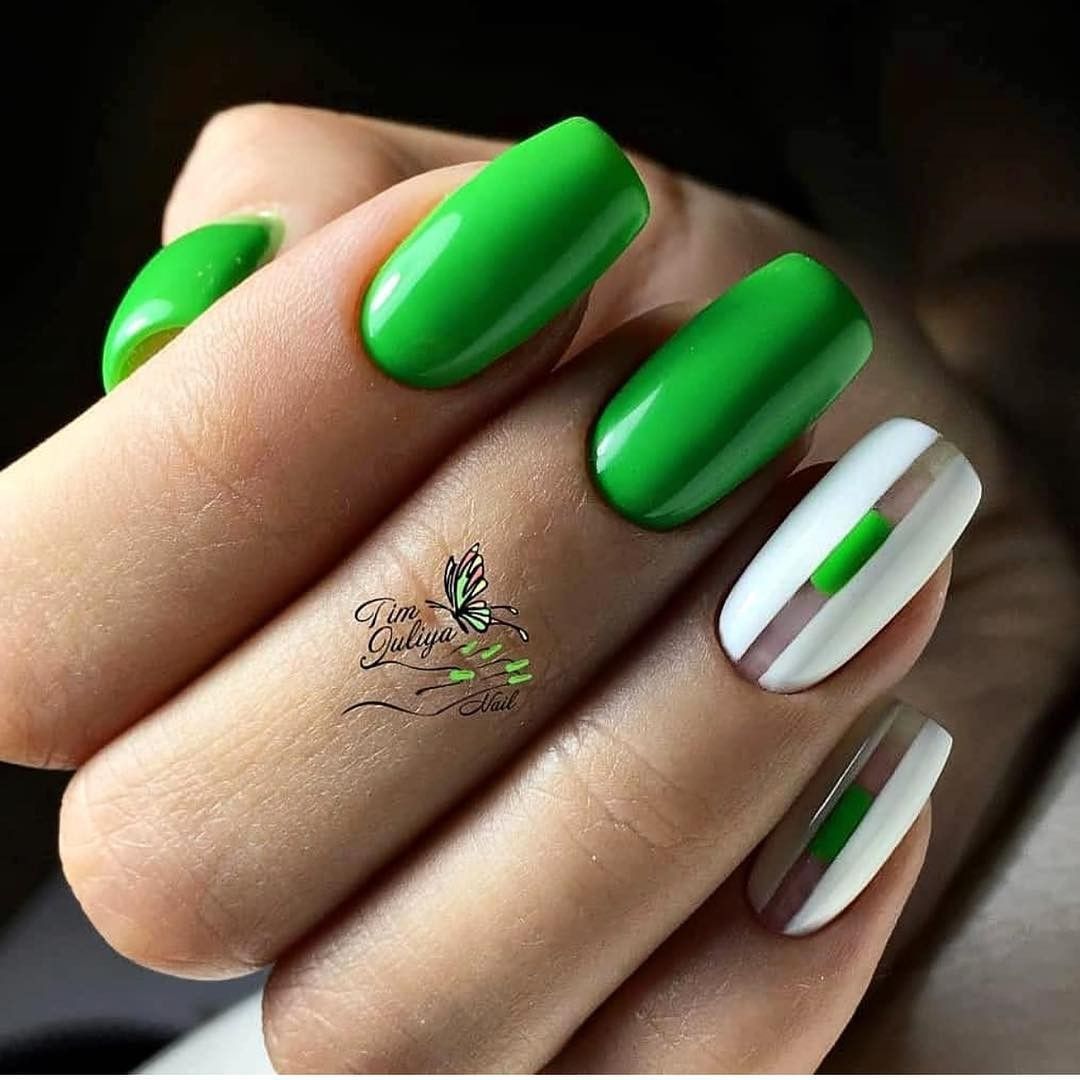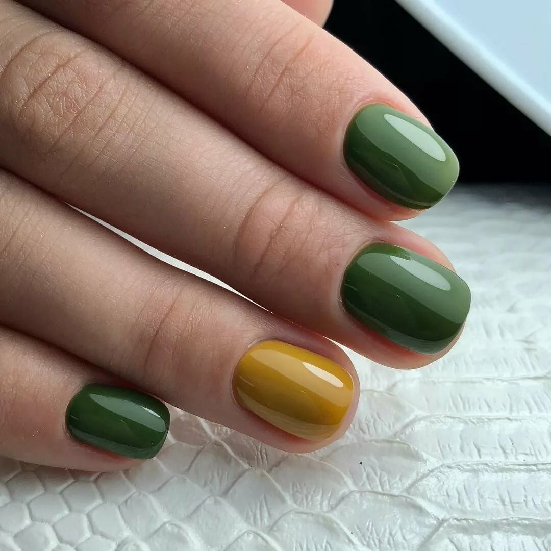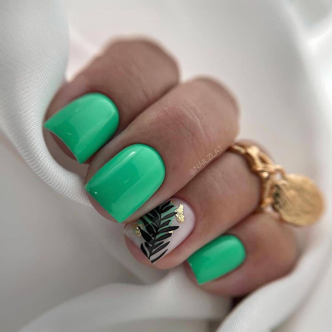Интересные идеи дизайна зеленого маникюра на короткие ногти в 2022 году
