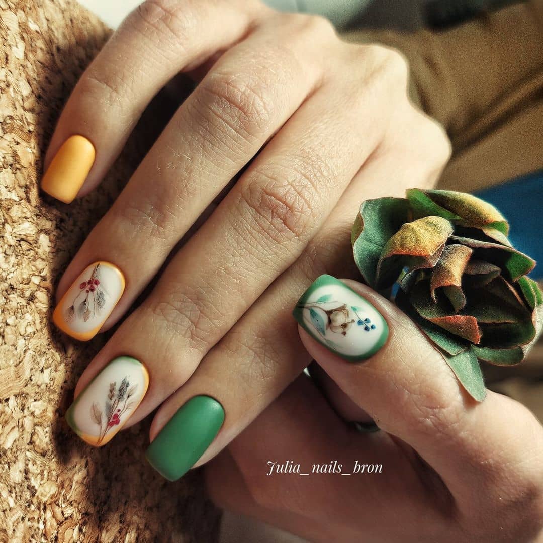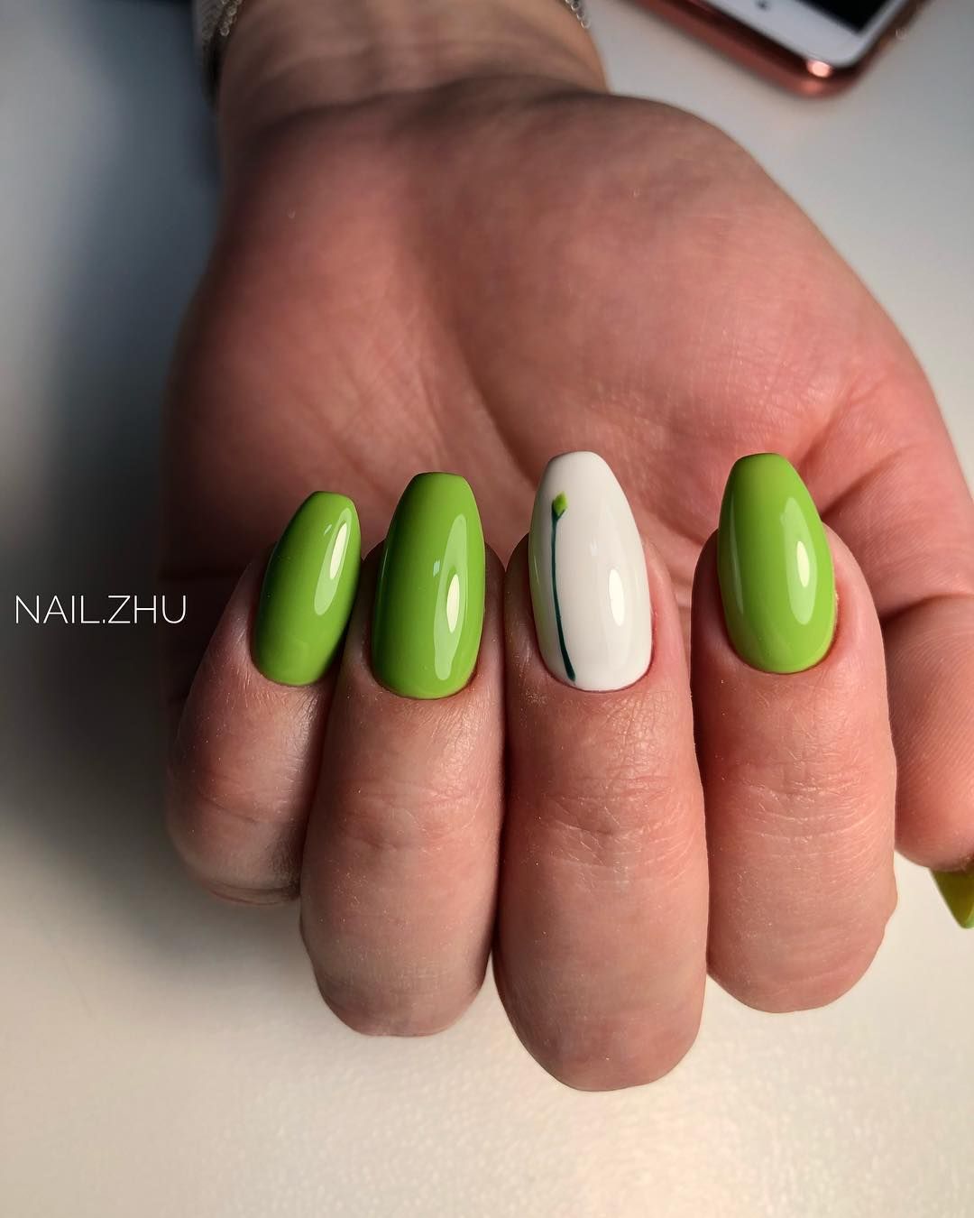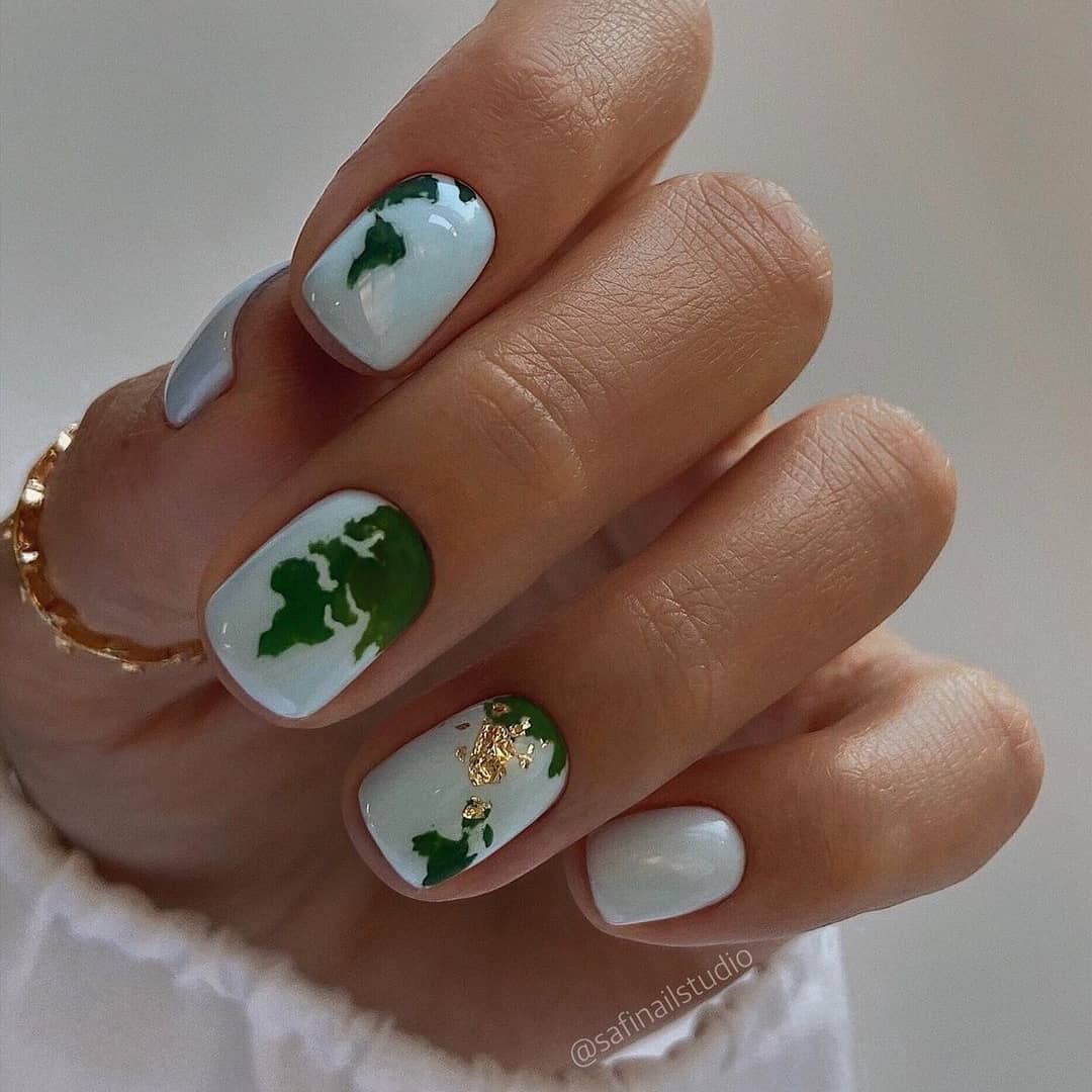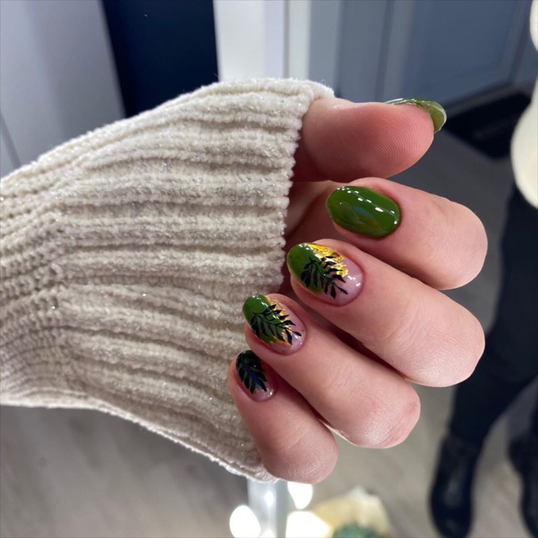 Интересные идеи дизайна зеленого маникюра на короткие ногти в 2022 году
