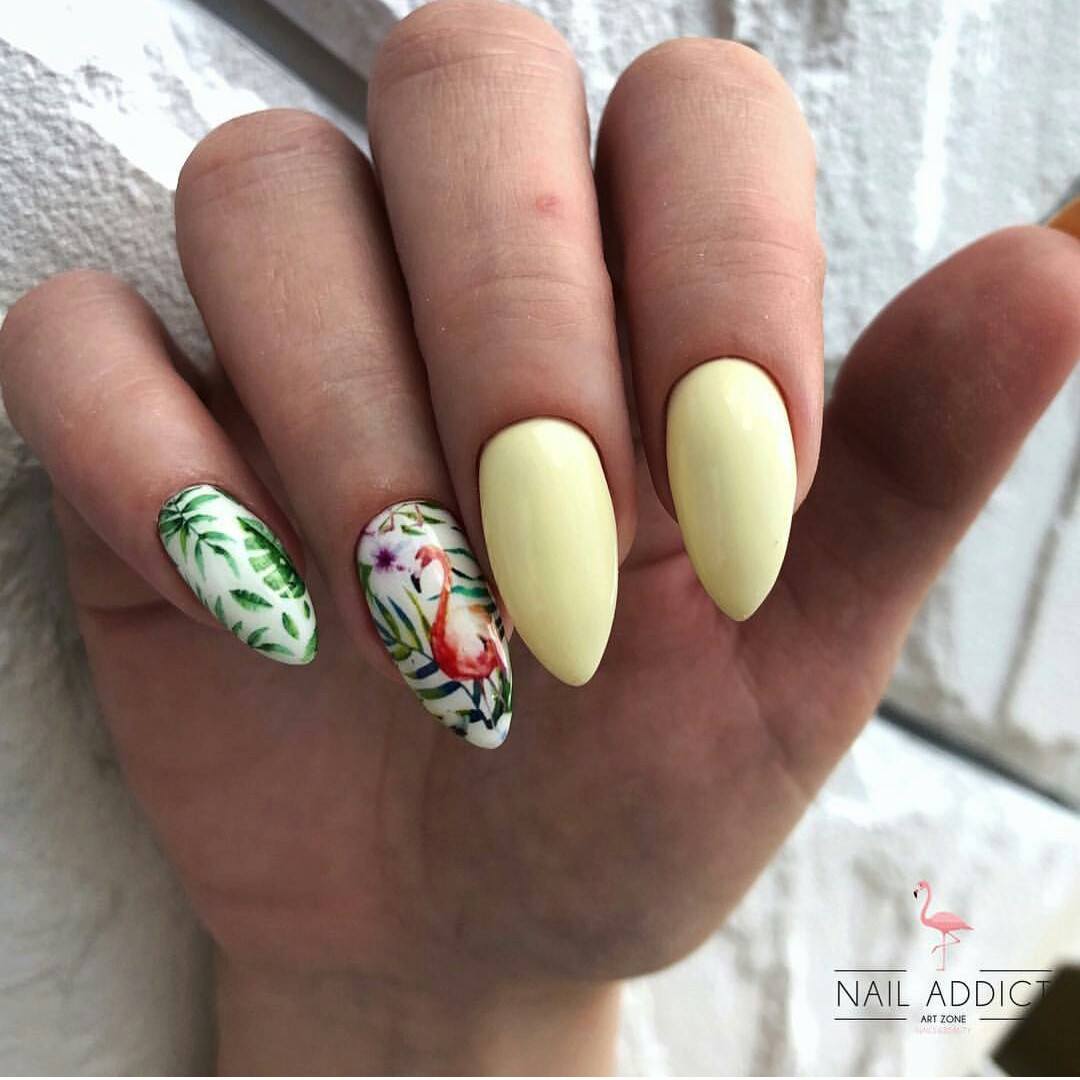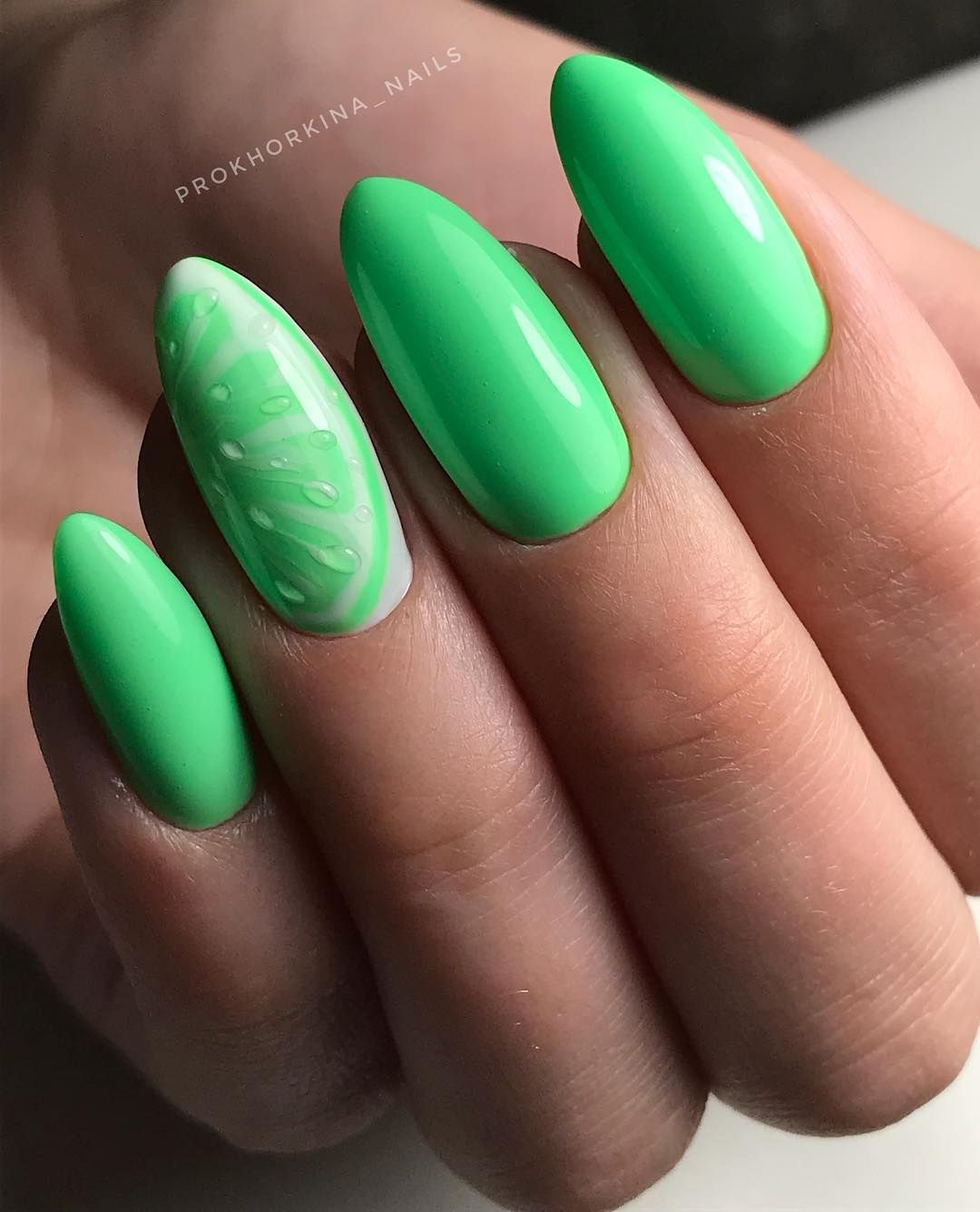 В прошлом сезоне принты с авокадо стали невероятно популярны и их можно было встретить повсюду. Зеленый маникюр не стал исключением. Такие рисунки смотрятся невероятно мило и способны поднять настроение своим дизайном.