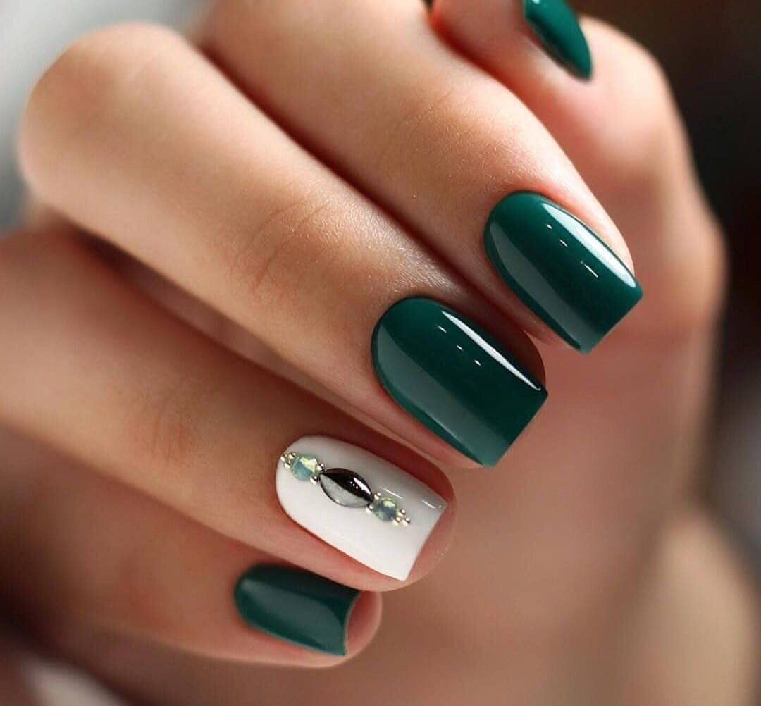 Рассмотрим «безопасные» варианты маникюра с зеленым цветом.