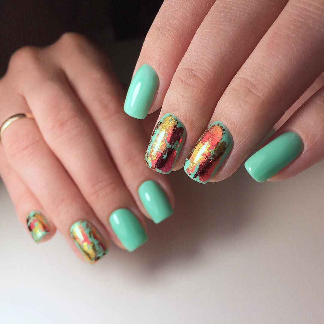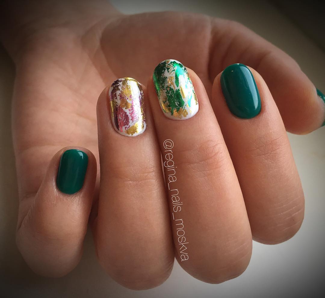 Присутствие фольги в зеленом маникюре сделает его еще более ярким и актуальным в 2022 году. Ее главным преимуществом является простота в использовании для мастеров маникюра. Фольга может быть разной формы, цвета и толщины.