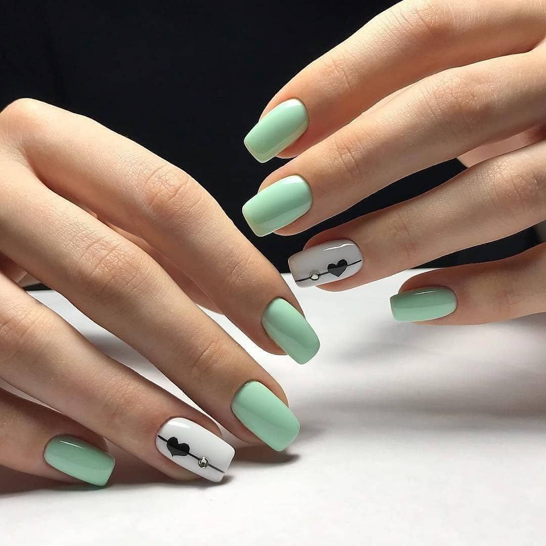 Нейл-арт с сердечками особенно актуален в день святого Валентина и весной, когда душа жаждет чего-то милого, легкого и девчачьего. Такой зеленый маникюр отлично подойдет для романтического свидания или в качестве дополнения свадебного образа.