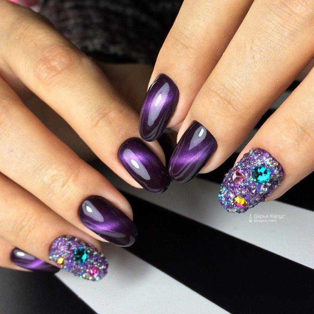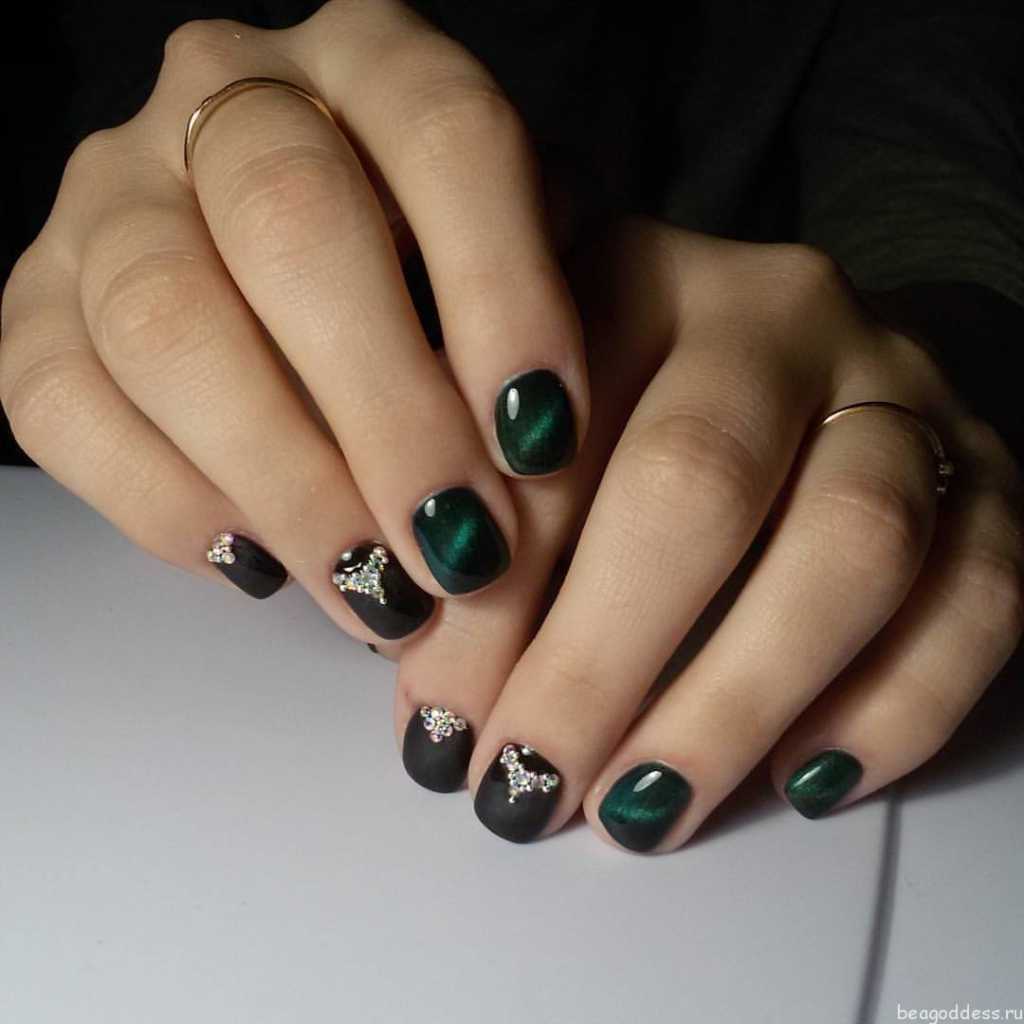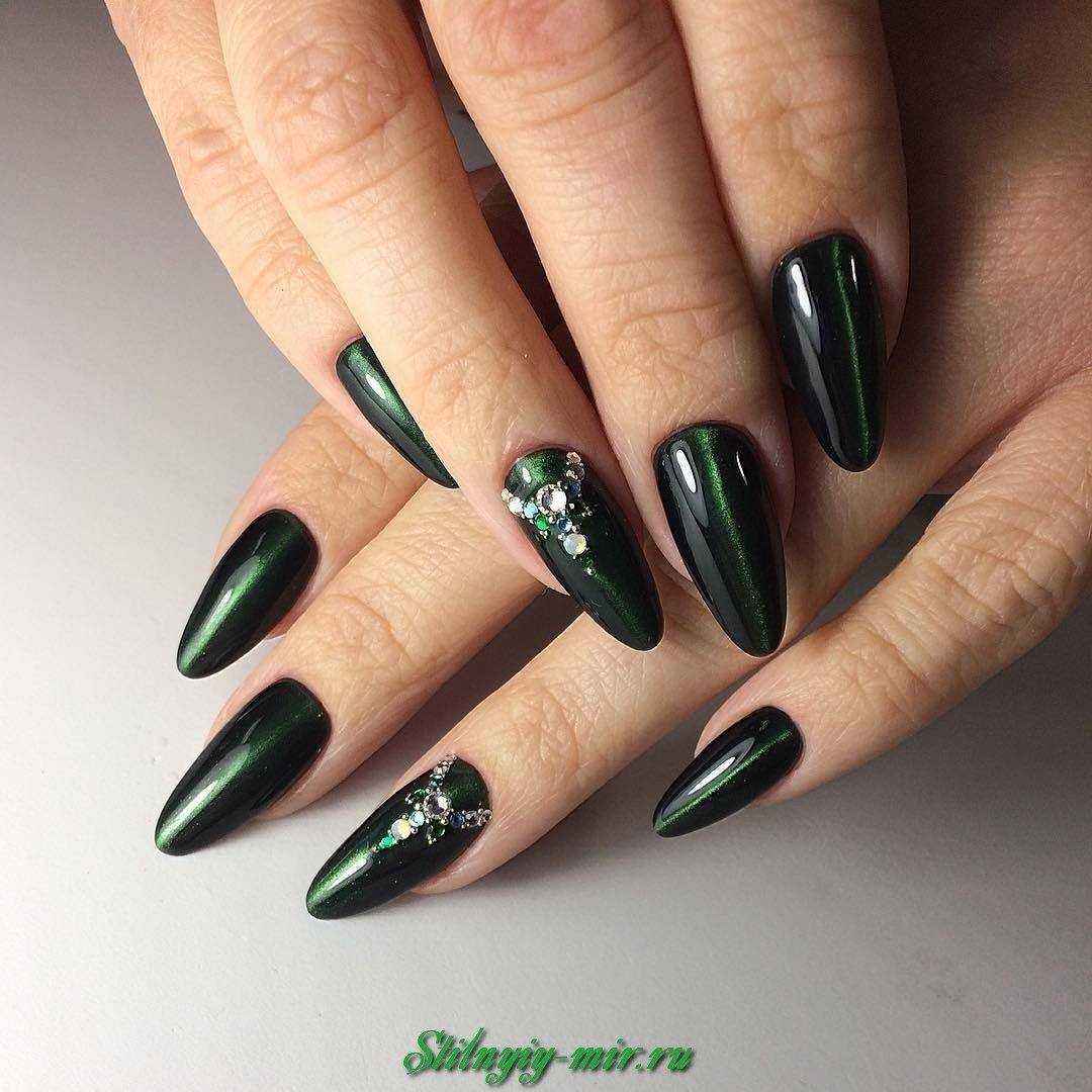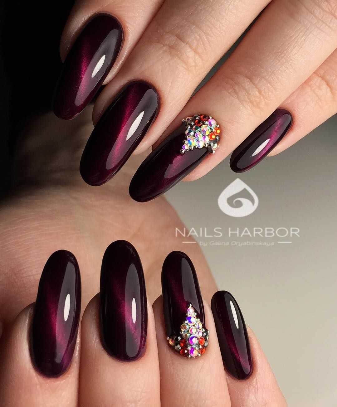 Новинки маникюра «кошачий глаз» с инкрустацией стразами