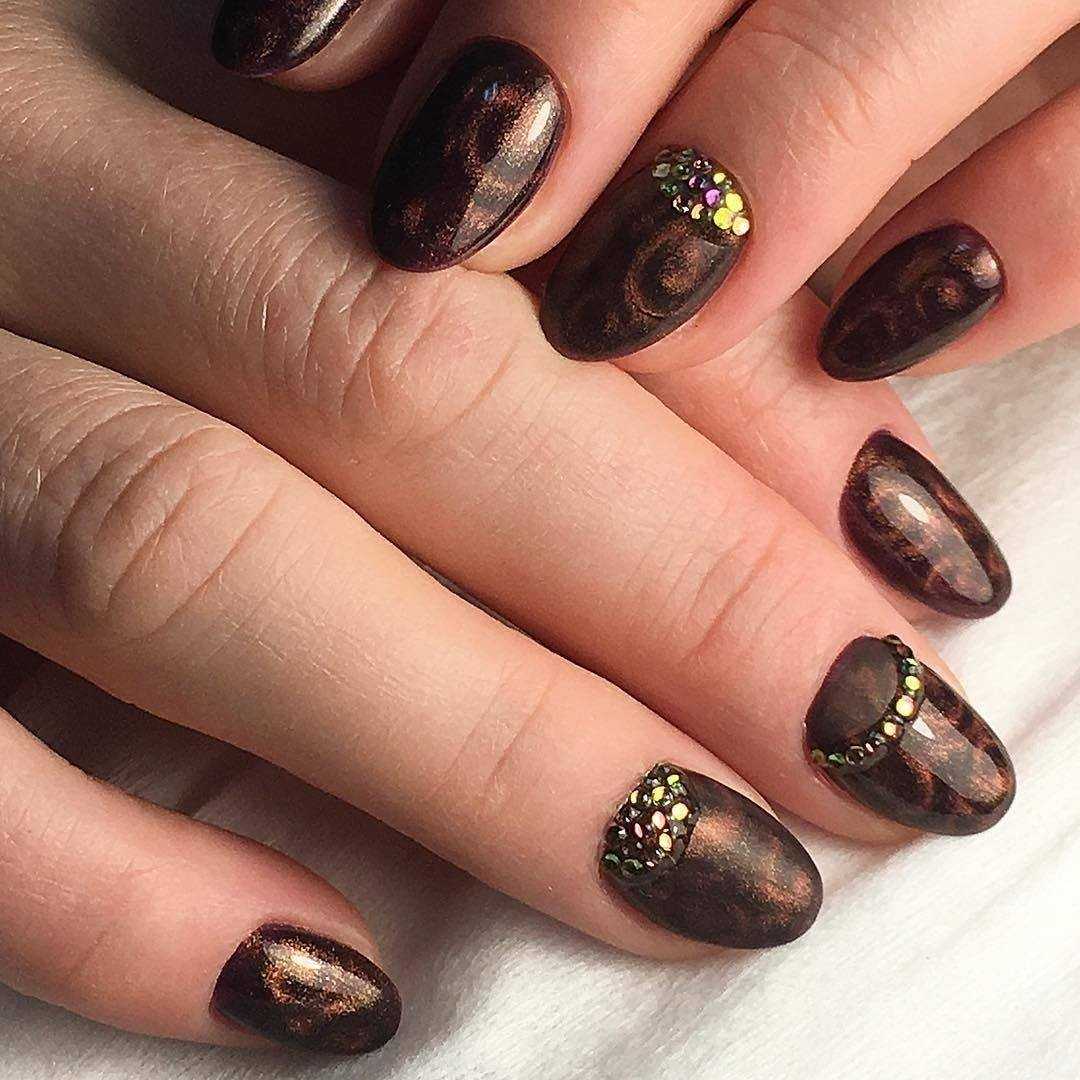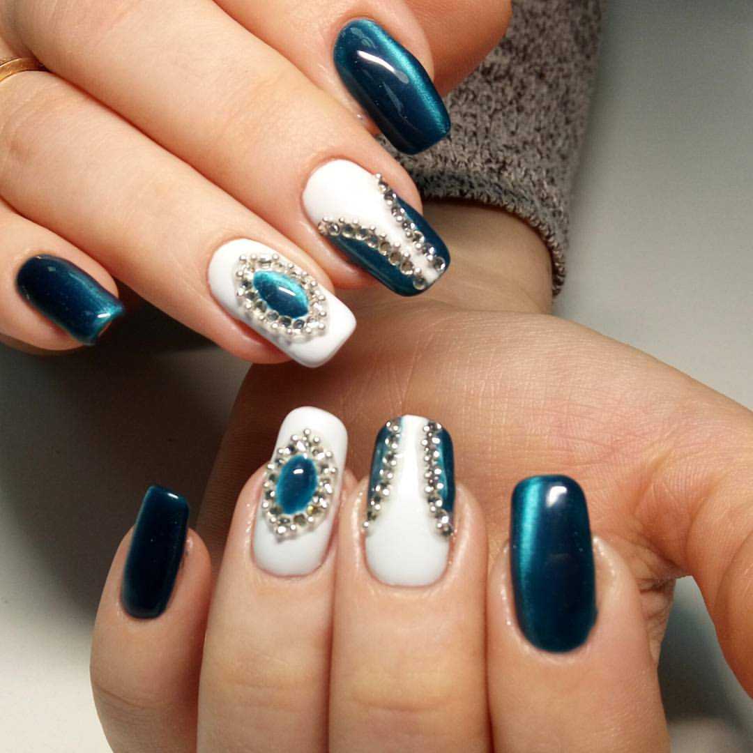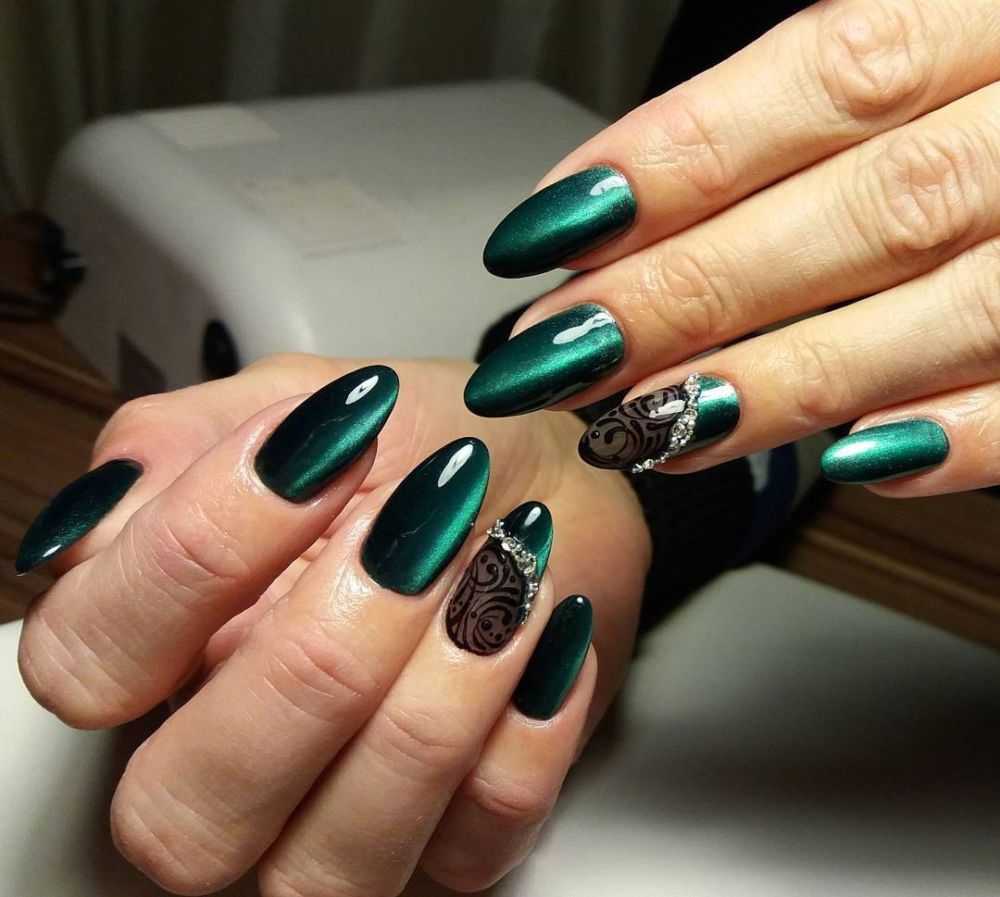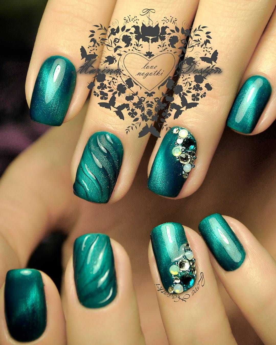 Новинки маникюра «кошачий глаз» с инкрустацией стразами