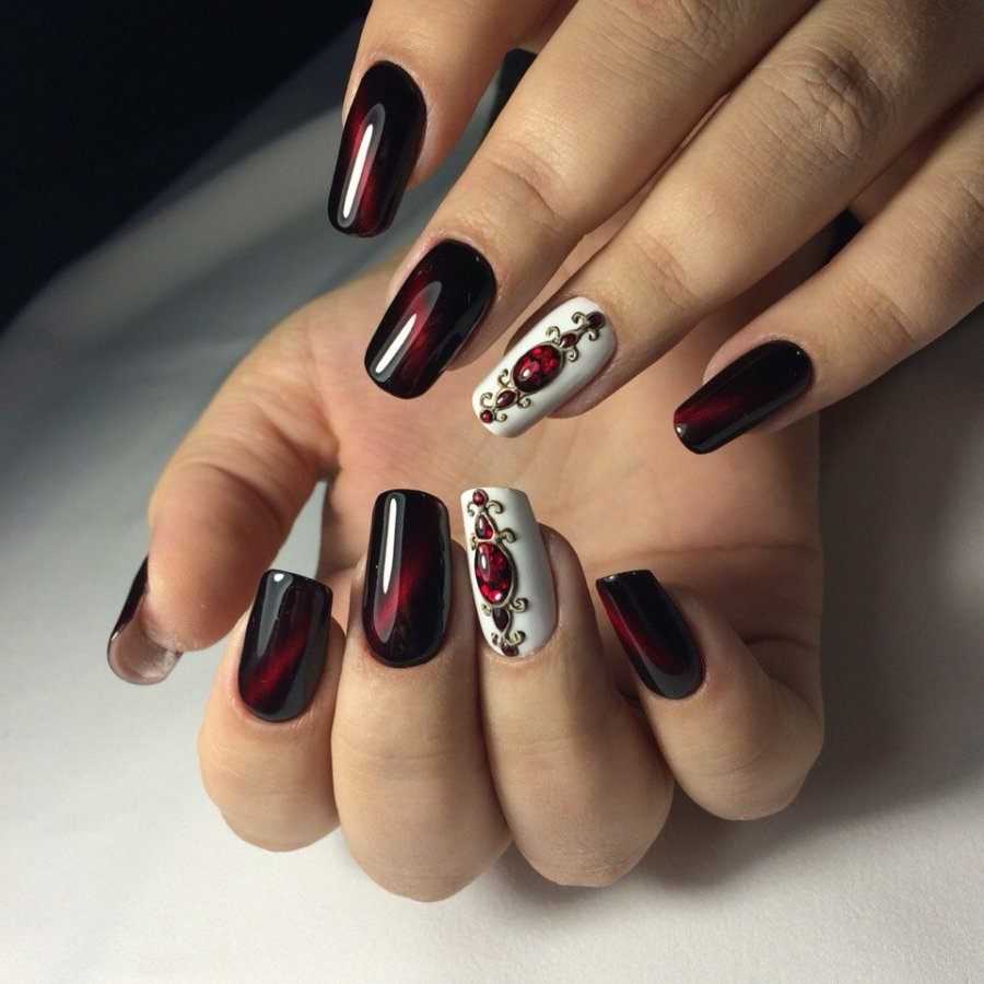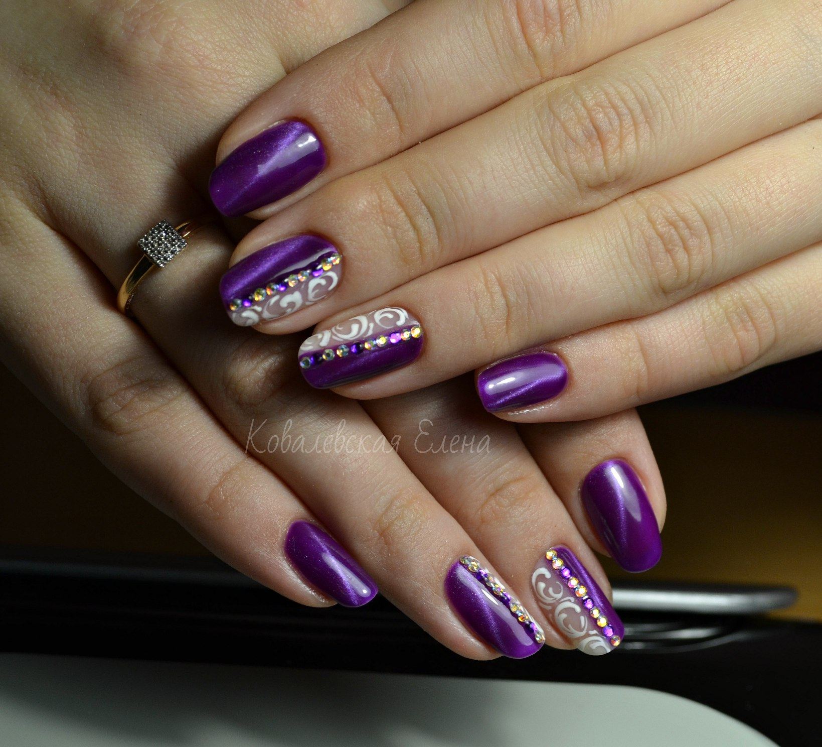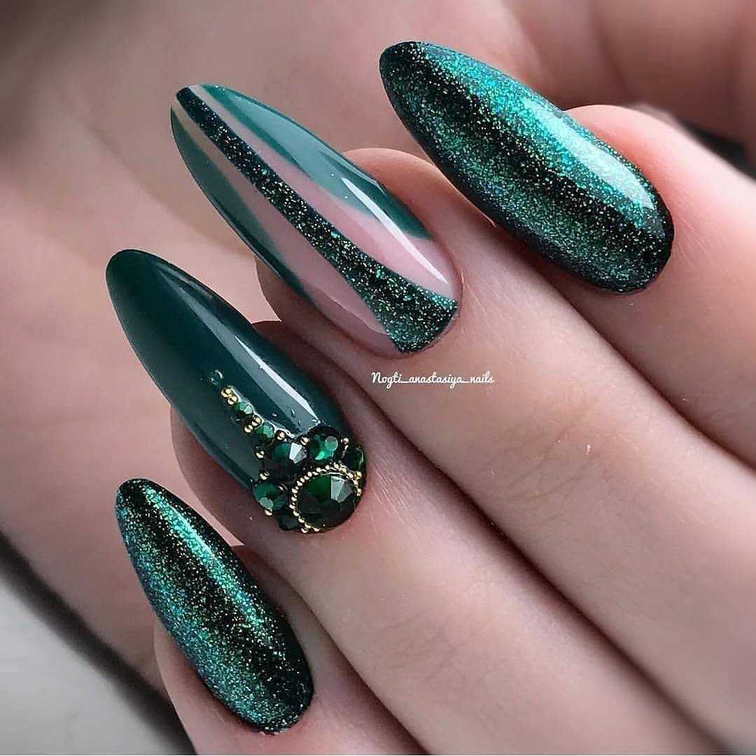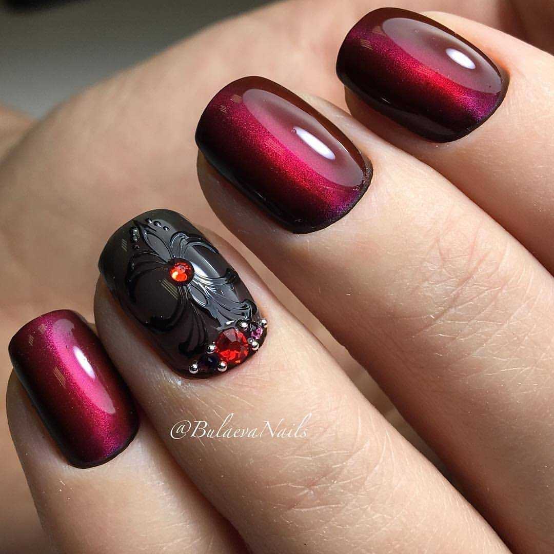 Новинки маникюра «кошачий глаз» с инкрустацией стразами