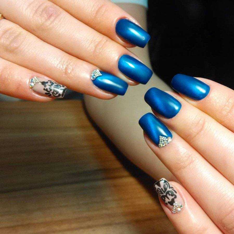 - маникюр будет изысканным и без иного декора, но может и дополняться стразами, блестками, узорами, сочетаться с разными техниками (градиент, «битое стекло» и др.);