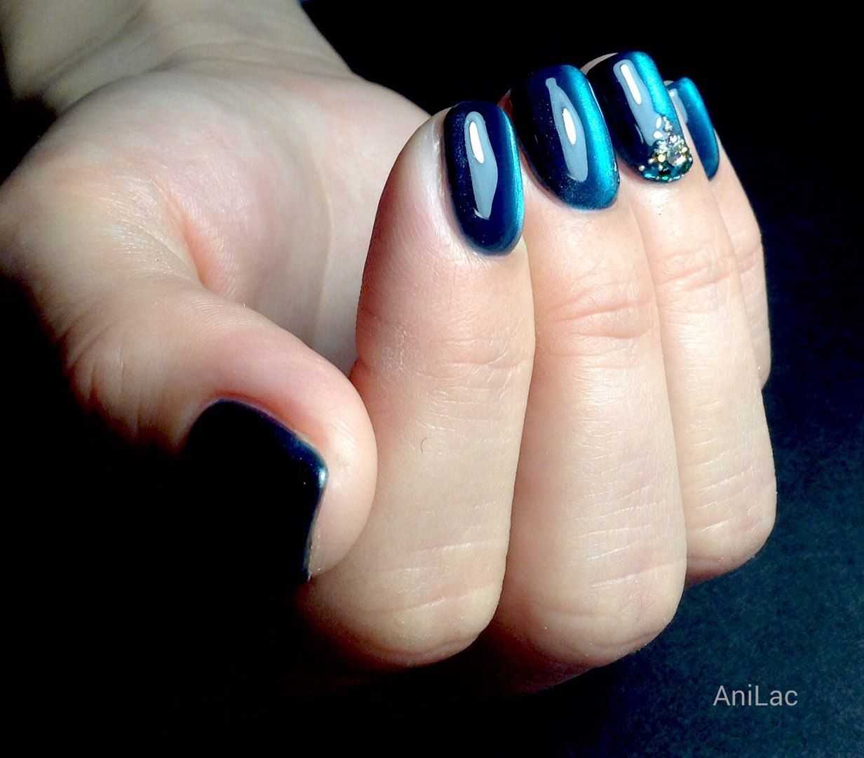 Маникюр с бликом можно выполнить, применяя гель-лак с металлическими частицами или обычный магнитный лак. Но в любом случае сначала следует ногти подготовить, чтобы дизайн выглядел максимально эффектно.