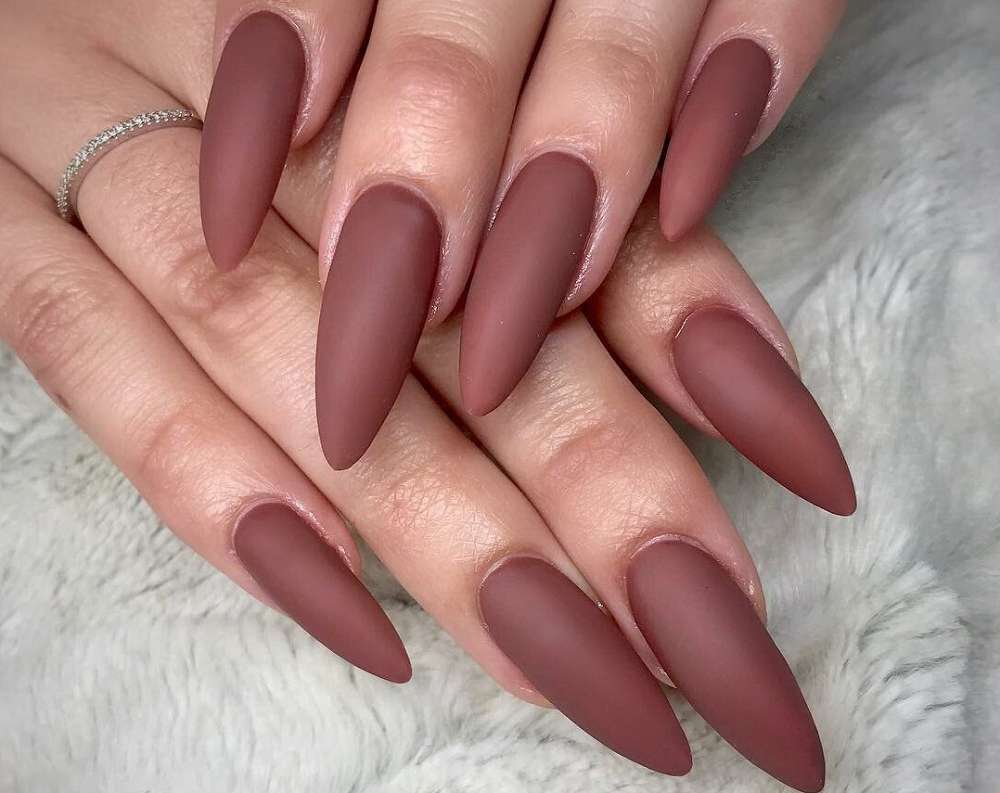Стилеты с маникюром в кофейном оттенке выглядят дорого