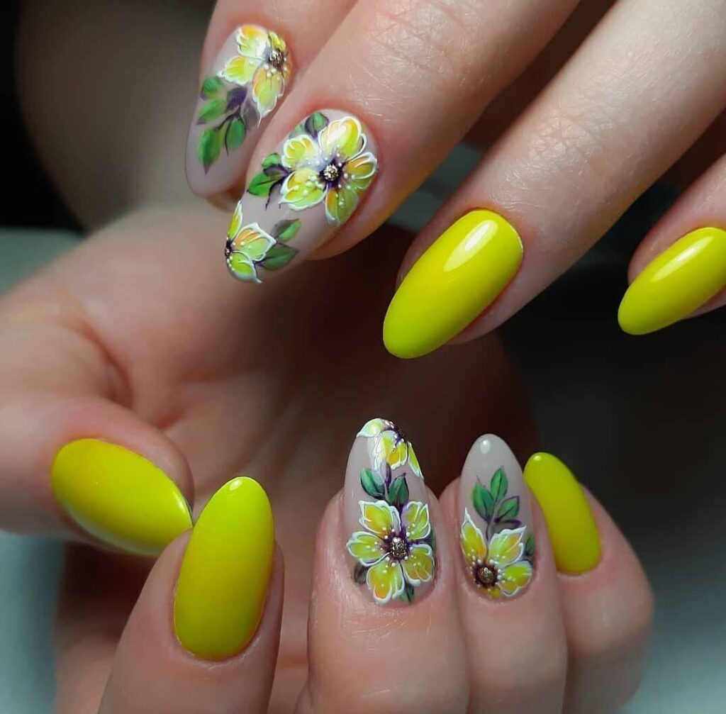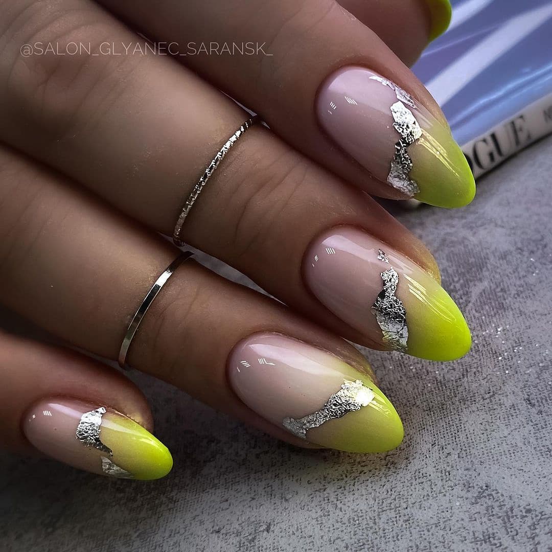 Яркий и выразительный лаймовый цвет не выходит из трендов уже несколько сезонов. Маникюр с таким покрытием на ногти средней длины выглядит лаконично и подходит каждой даме, независимо от возраста.