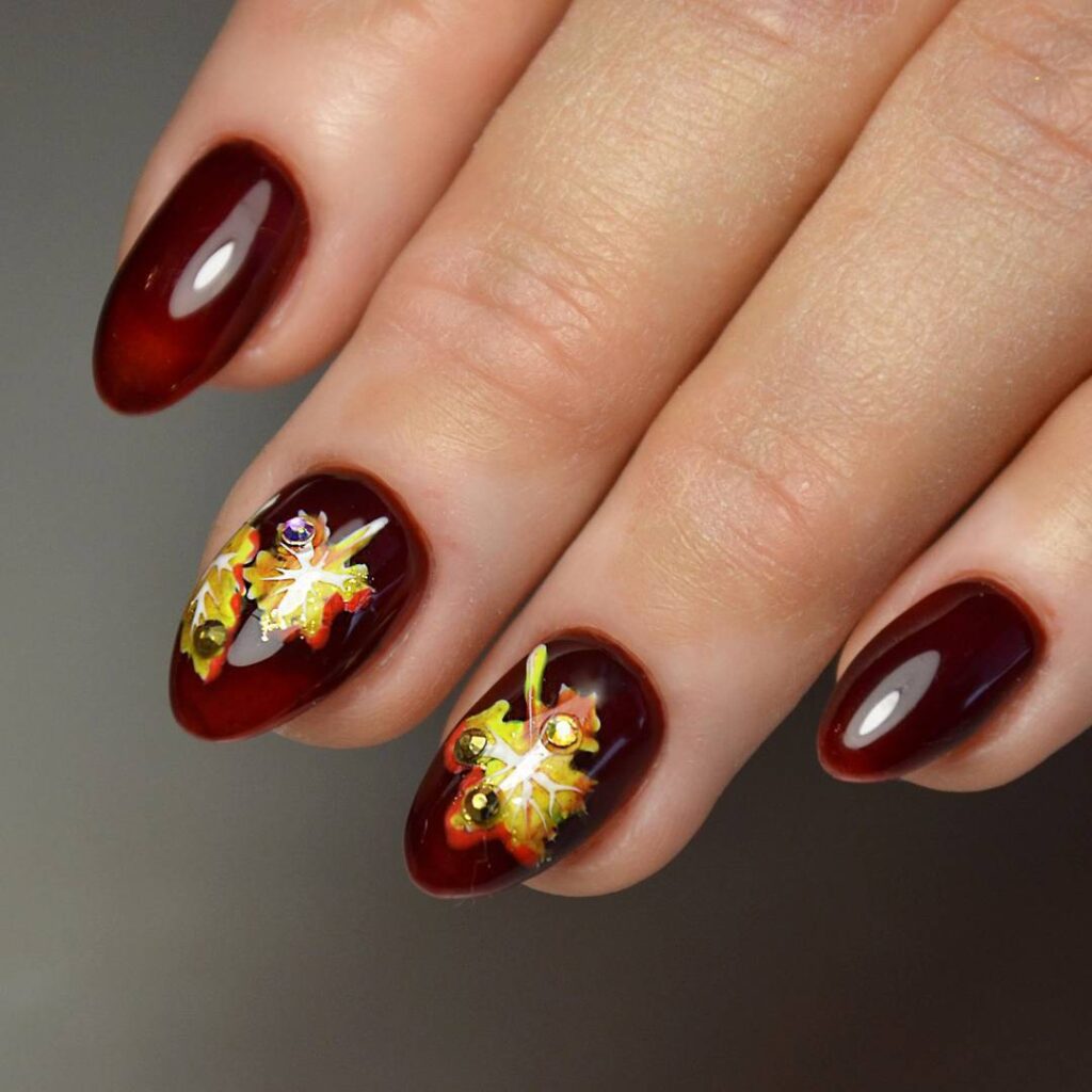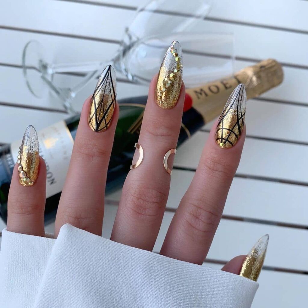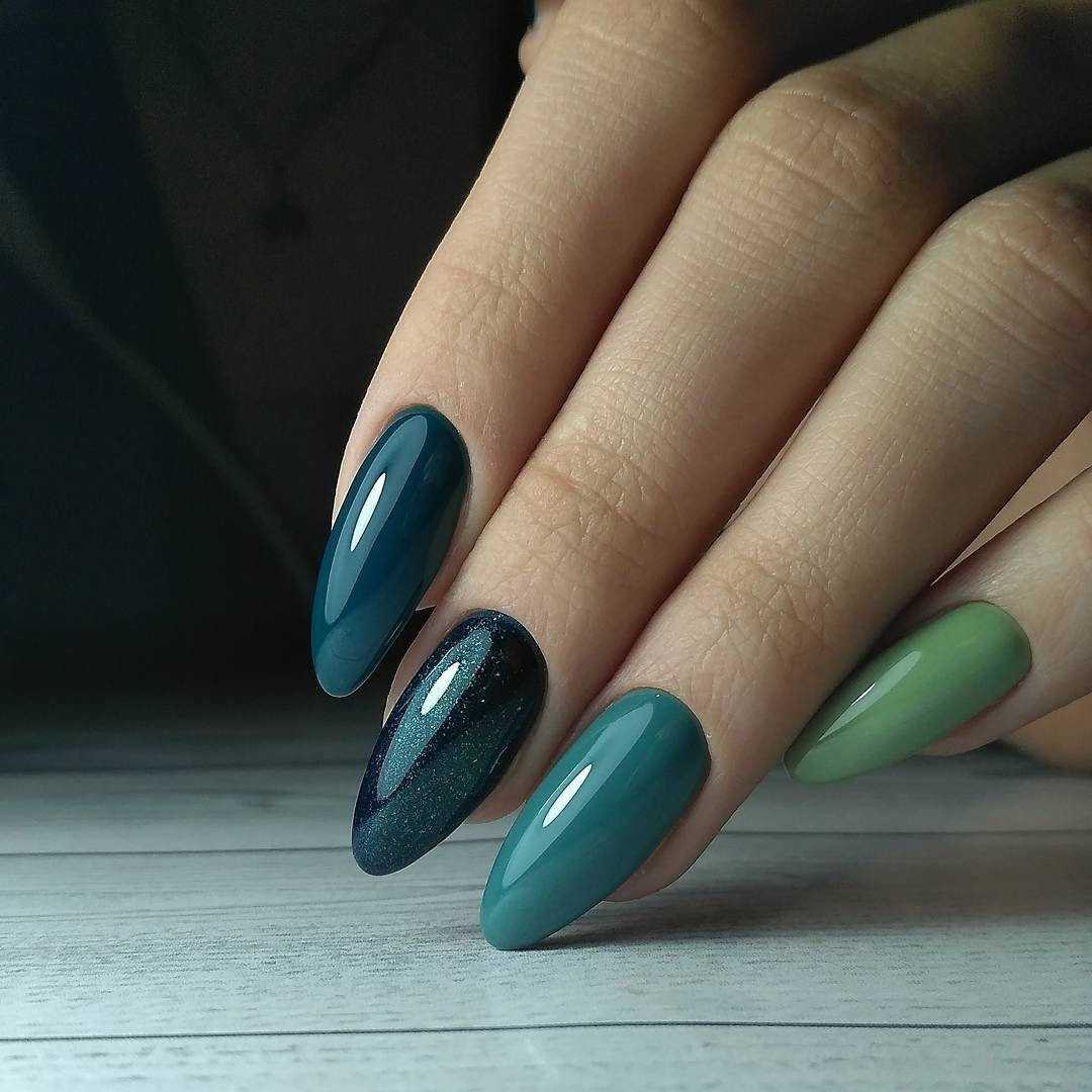 Длинные овальные ногти — лучший вариант для праздничных моментов, а вот цвет и декор зависит от повода. Так, тигриный или тёмные тона больше подойдут для дизайна молодежных вечеринок, сдержанные «взрослые» цвета — для званных обедов.