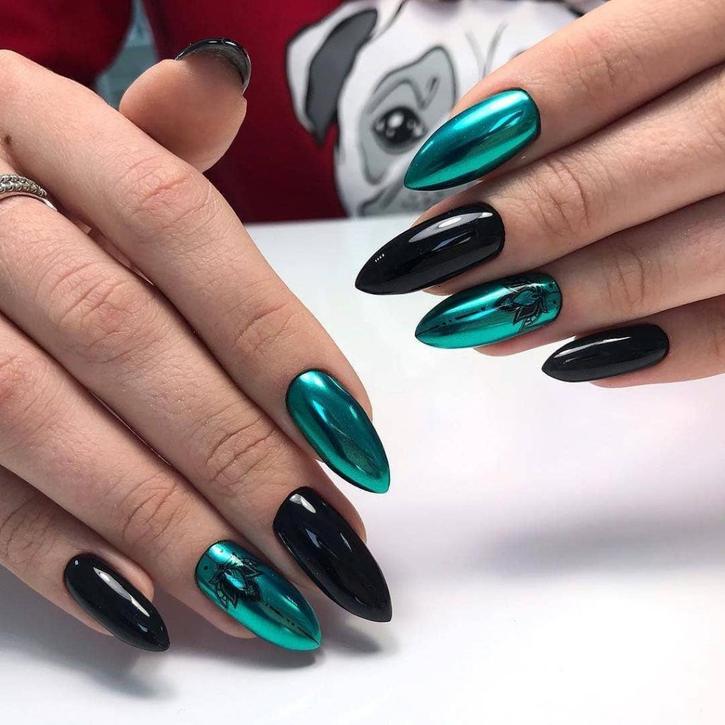 Чёрный лак на ногтях уже давно не ассоциируется с неформальными субкультурами, смотрится очень сдержанно и в модном сезоне 2024 считается признаком элегантности. Он прекрасно сочетается со многими известными техниками оформления и чудесно смотрится с украшениями и декором. Втирка в нашем случае, также не является исключением. Вы даже не представляете себе, насколько богато и шикарно выглядит такой тёмный маникюр с переливами пудры. Это может быть вариация однотонного нейла с блестящими переливами на каждом ноготке, комбинированный дизайн с блестящими и матовыми ногтями, маникюр с втиркой и рисунками или примеры нанесения пигмента в виде переходов градиента, когда на ногтевой пластине используется несколько цветов акриловой пудры. Не смотря на некую мрачность и бесконечную глубину, чёрный лак можно назвать идеальной базой для создания подобного дизайна.