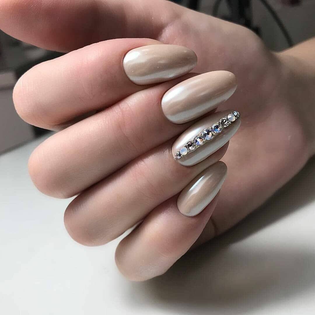 Насколько бы потрясающе не смотрелись ваши ноготки с переливами втирки, всегда можно усовершенствовать уже готовый шедевр, и стразы в этом случае актуальны как никогда. Благодаря разновидностям этого декора к любому дизайну можно подобрать идеальное дополнение, ведь стразы – это не только классические кристаллы с огранкой, имитирующей драгоценные камни. Всевозможные бусины, бульонки, хрустальная крошка и жемчужные полусферы также относятся к этой категории. При создании стильного маникюра с тандемом втирки и страз в 2021 году следует придерживаться стилистики минимализма, потому что перегруженные декором ноготки вызовут эффект отталкивания. Среди актуальных предложений расположение страз в прикорневой зоне одного из ноготков с блестящей основой. Очень красиво смотрится вариант, в котором под украшения выделяется один-два ноготка с бархатистой поверхностью, а остальные пластины обрабатываются втиркой. Также, как вариант, можно выделить безымянный палец хрустальной крошкой в тон основному лаку или украсить ноготок рисунком с камнями, бусинами и жемчугом.
