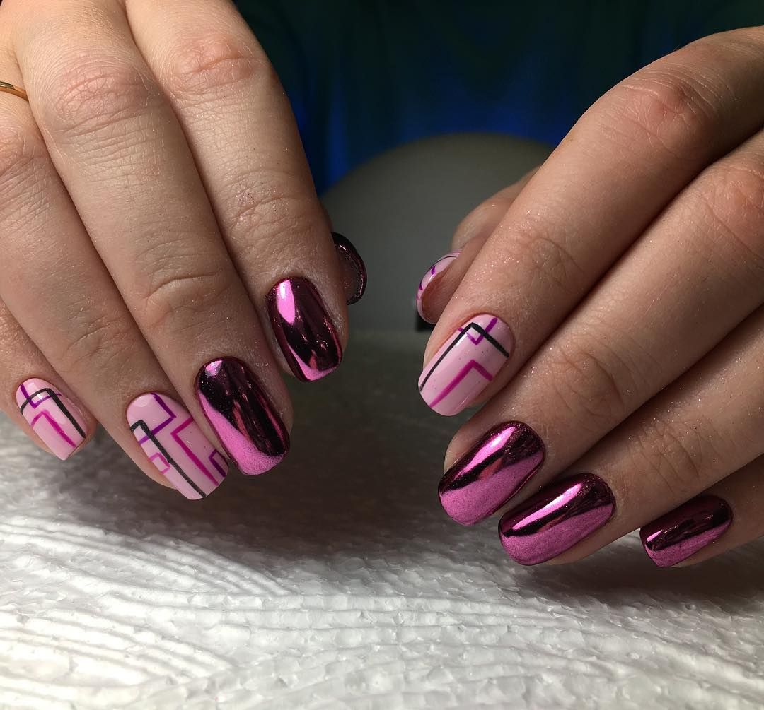 Мы уже говорили о том, что втирка вполне может быть использована, как самостоятельное украшение маникюра. Однако нельзя не согласиться с тем, что различные рисунки и узоры способны придать индивидуальности всему образу и эффектно преобразить любое оформление. Волшебные переливы и блеск на ногтях чудесно сочетаются с всевозможными флористическими изображениями, абстракцией, геометрическими рисунками и ажурными узорами. Главное, чтобы выбранный эскиз, в общем, гармонично вписывался в стилистику вашего наряда.