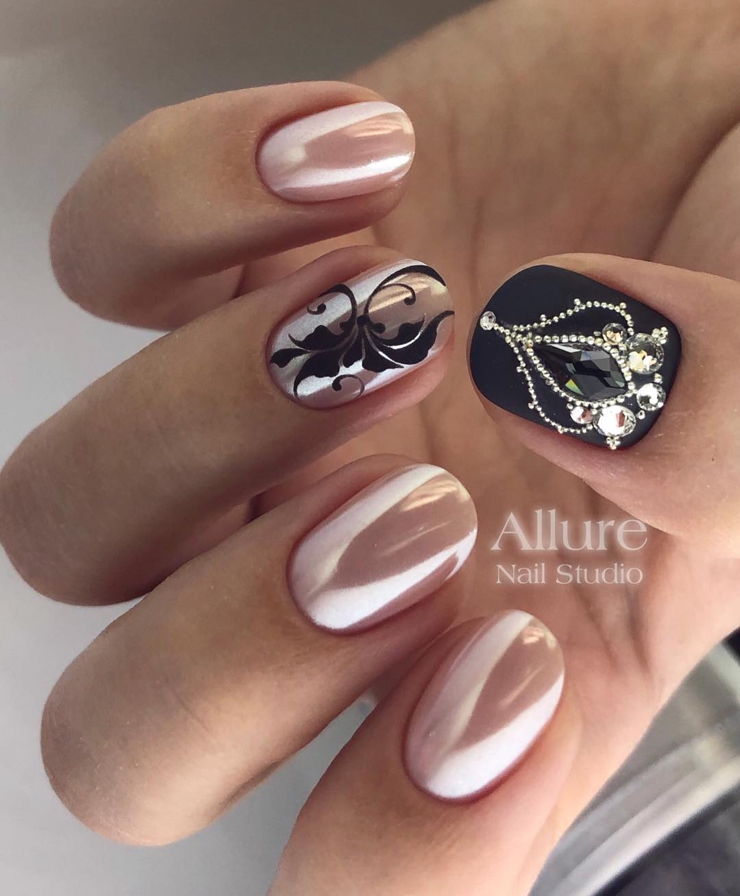 Маникюр с втиркой и стразами
