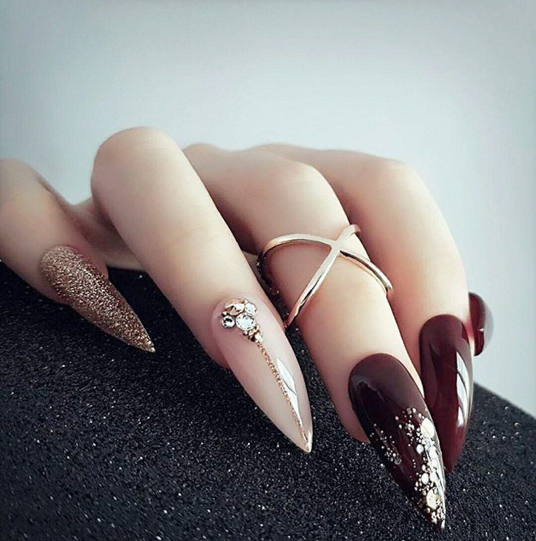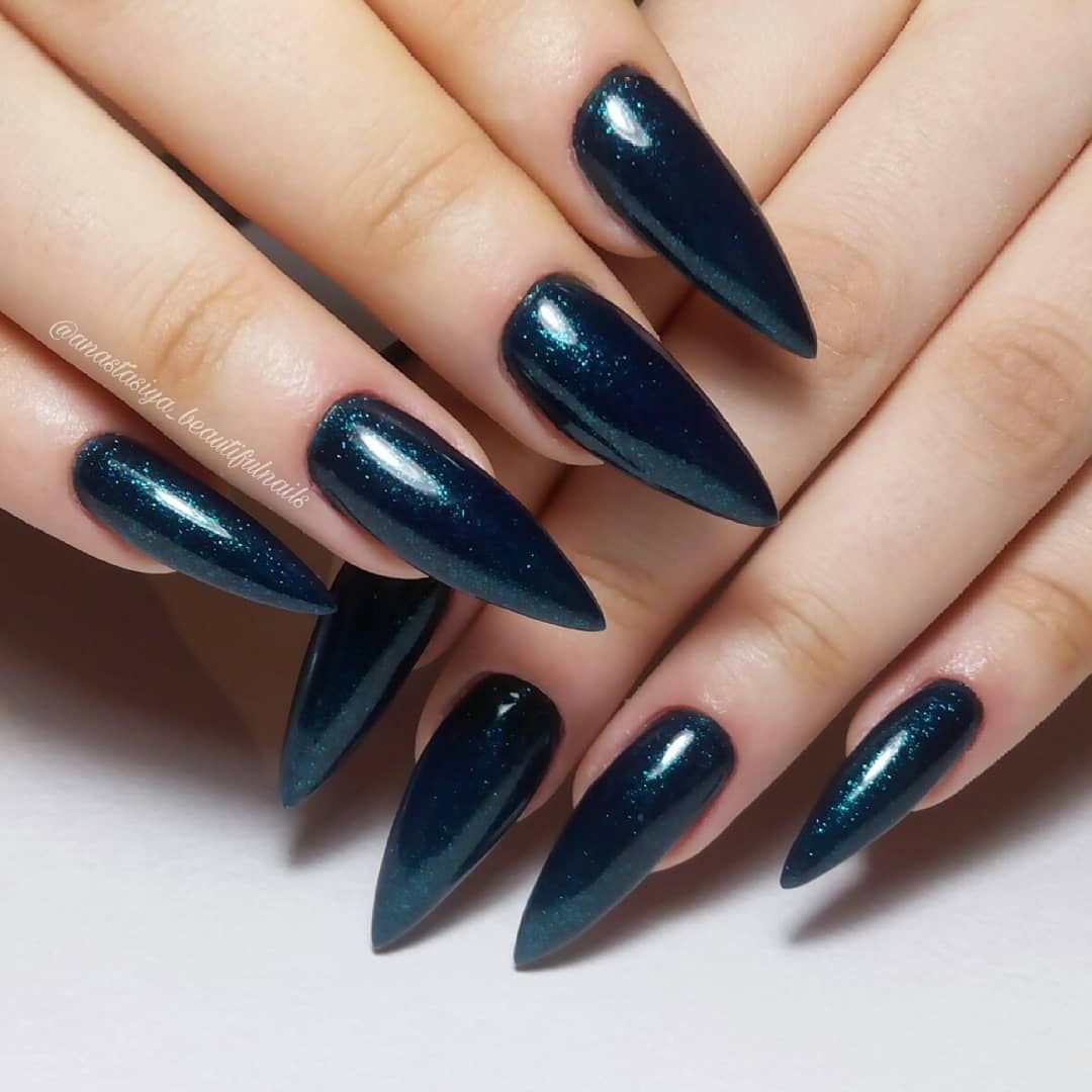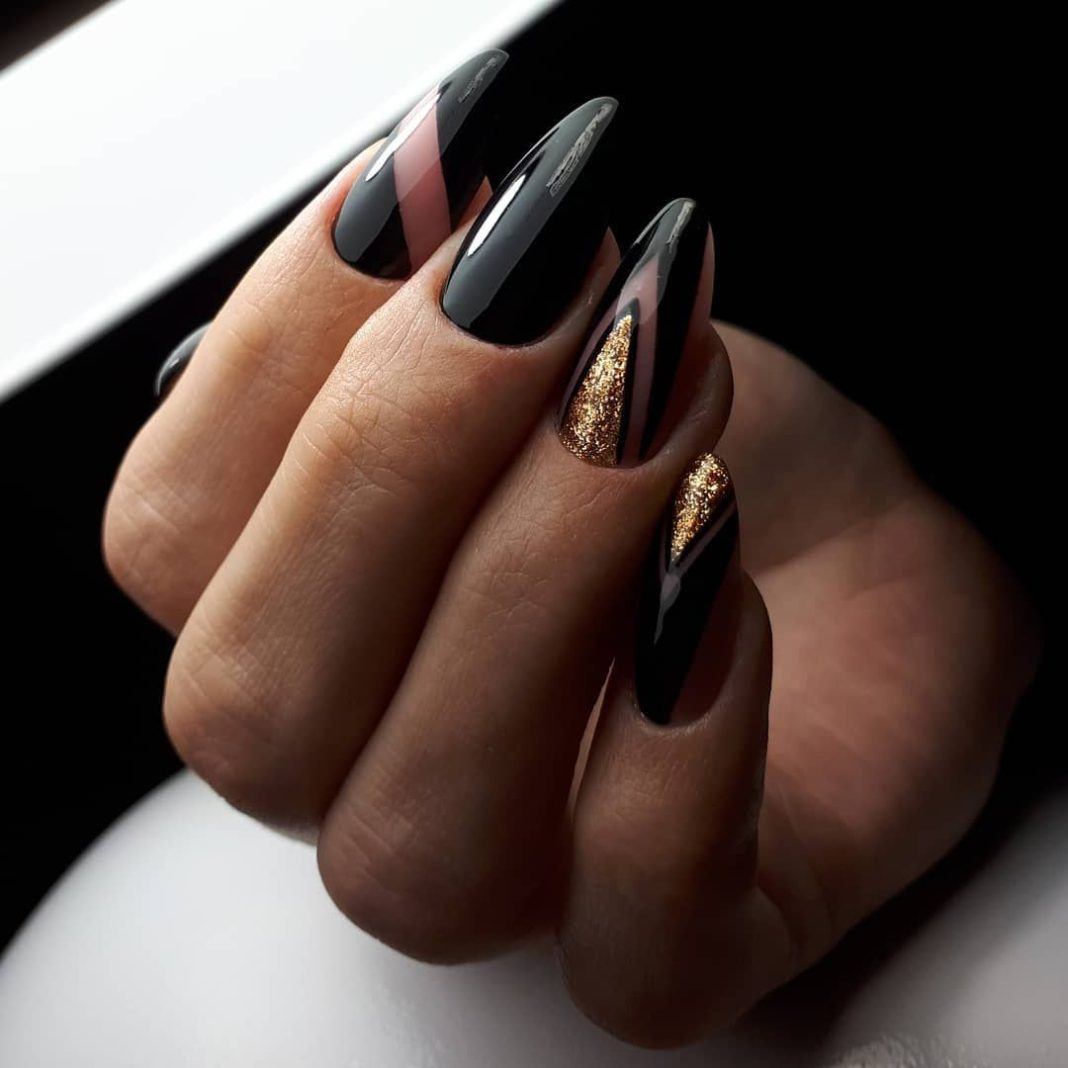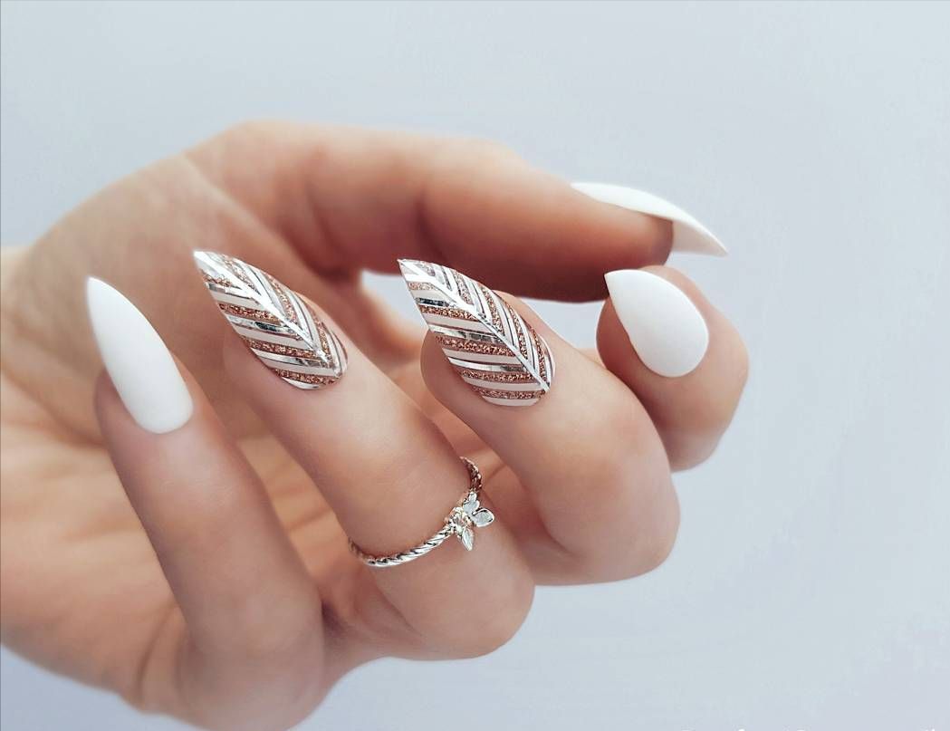 Если вы решительная противница коротких ногтей, то для вас разработан стильный «голый» маникюр 2020-2021 года на острые ногти.