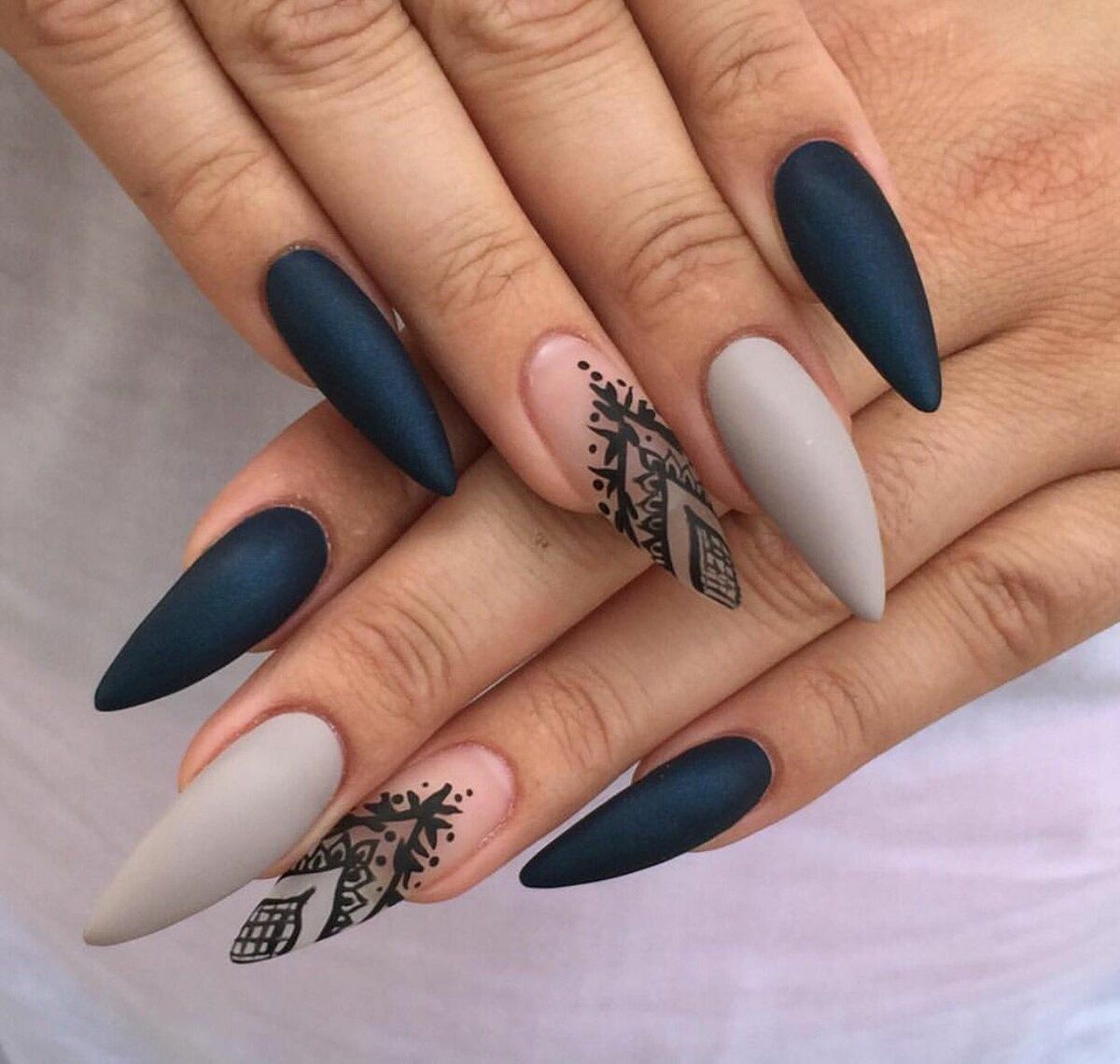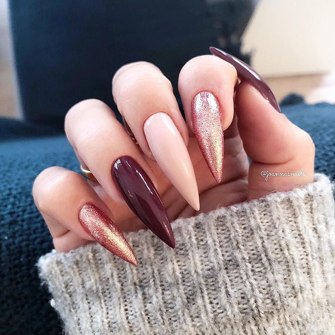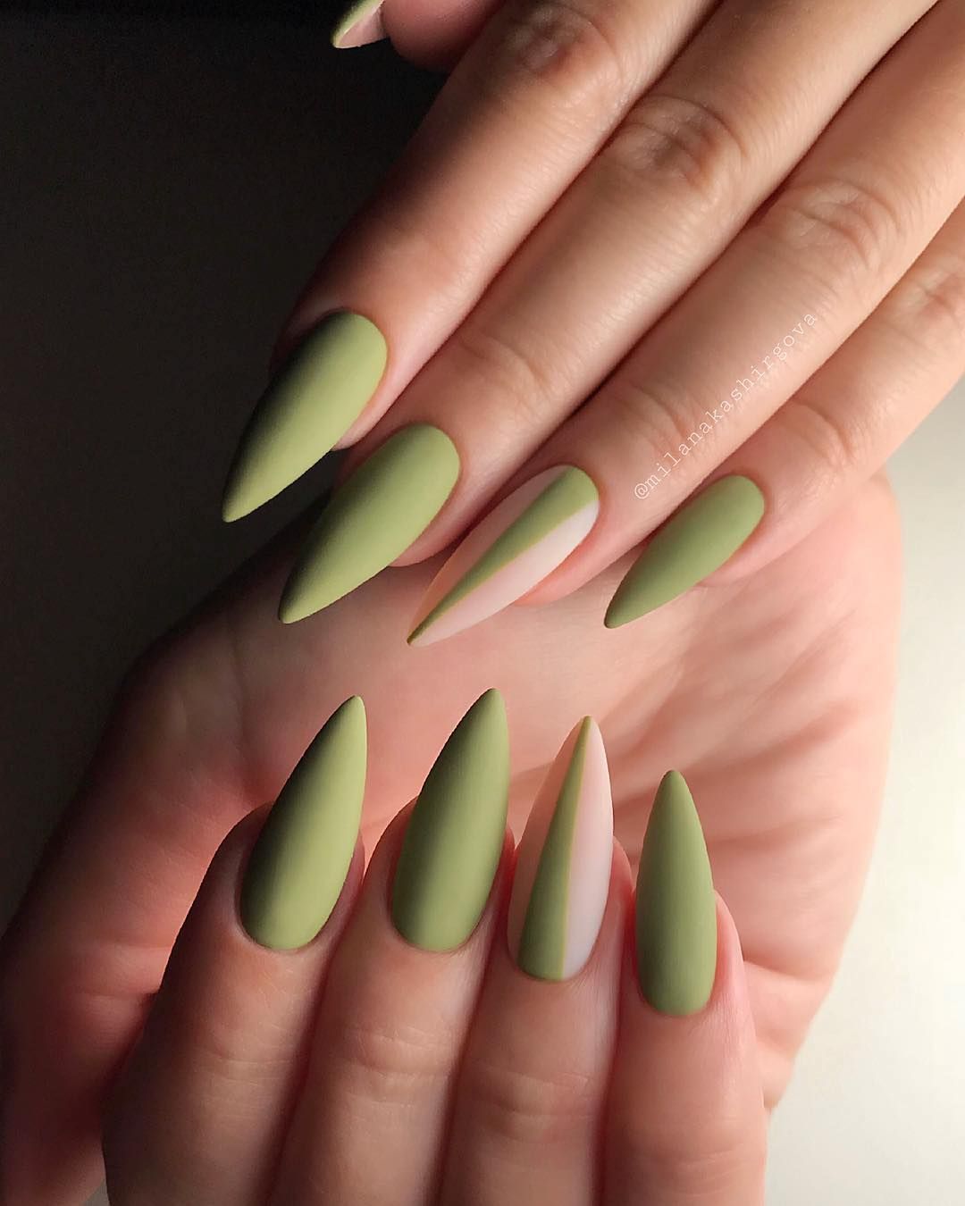 Если вы решительная противница коротких ногтей, то для вас разработан стильный «голый» маникюр 2020-2021 года на острые ногти.