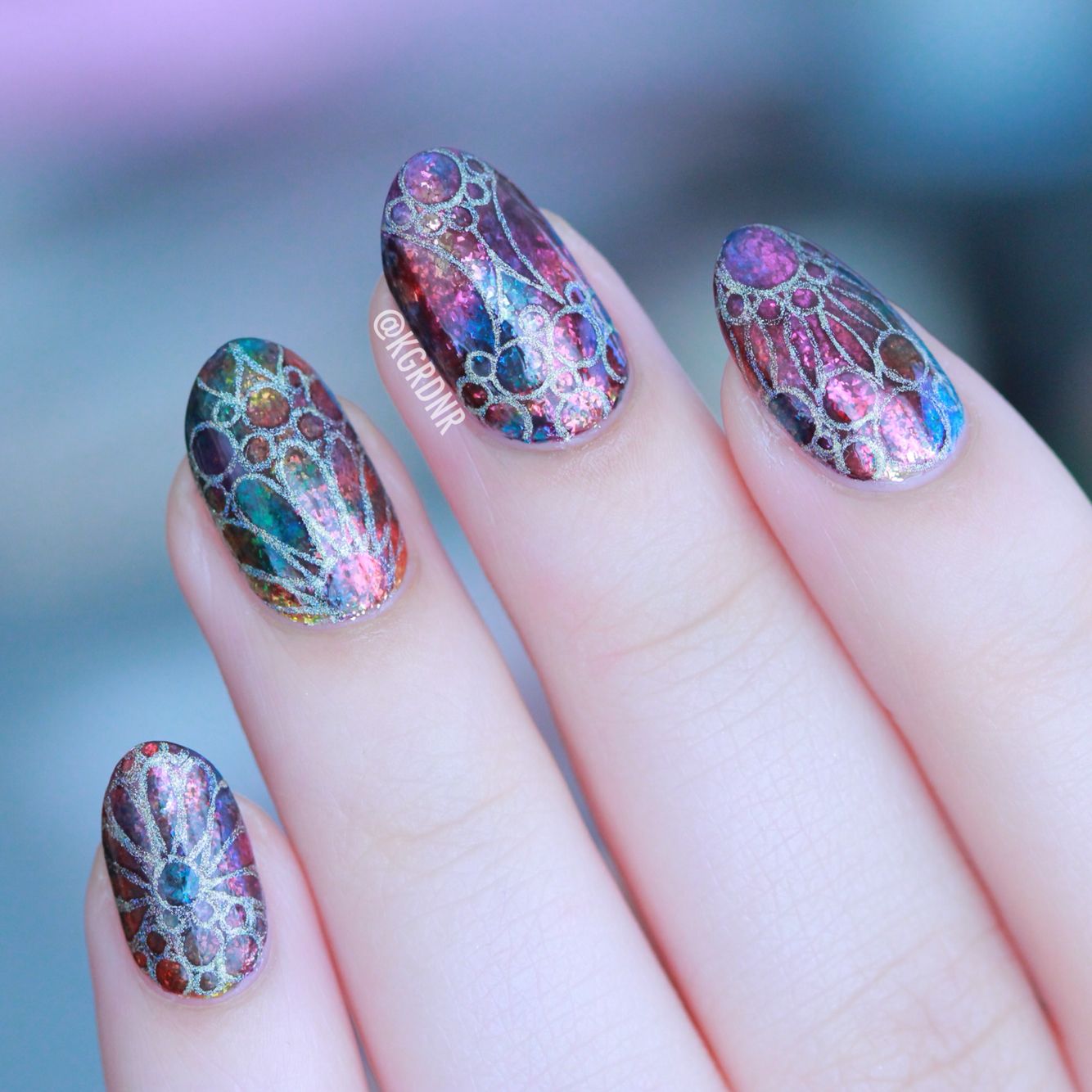 #3 Витражный рисунок на ногтях: имитация витража с помощью гель-лака