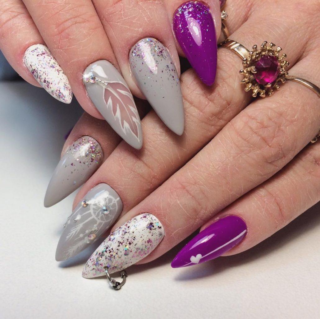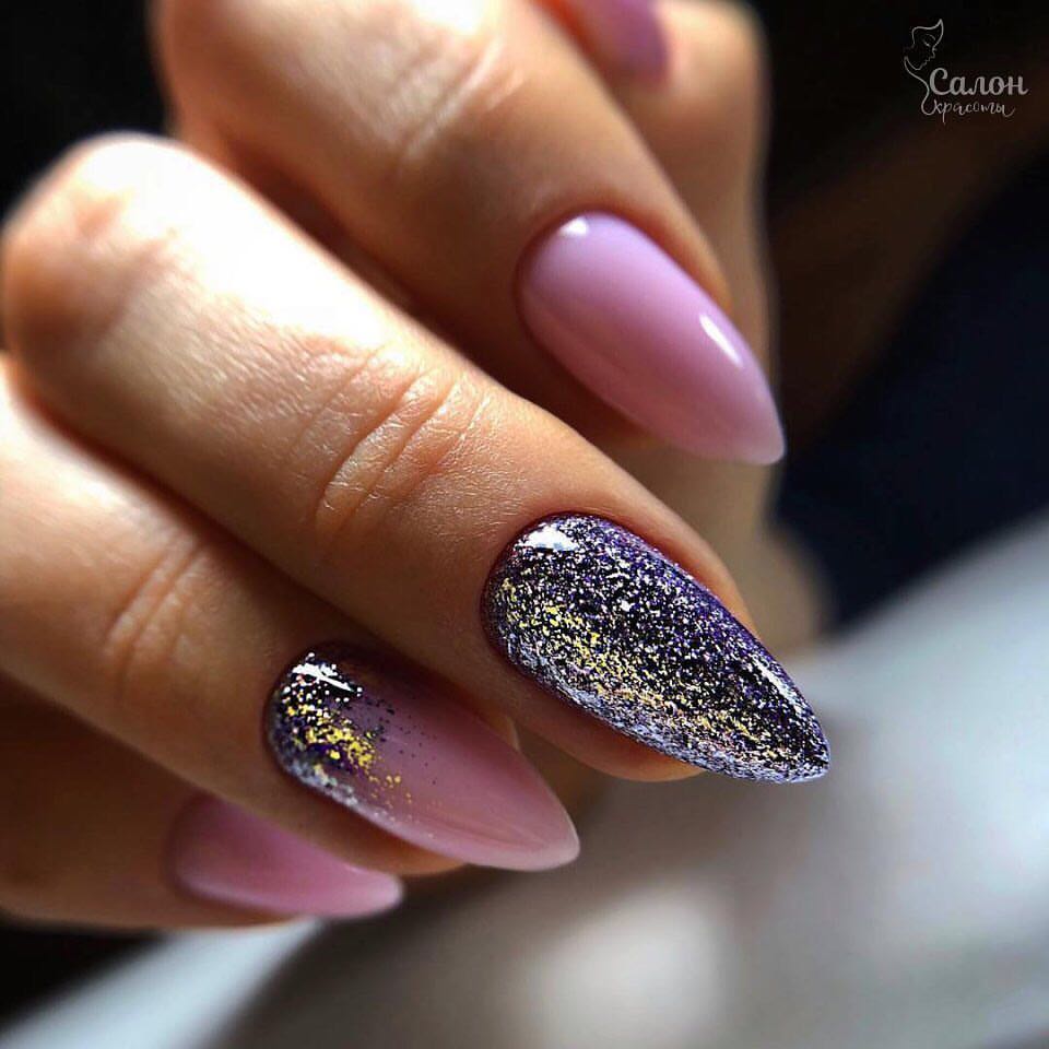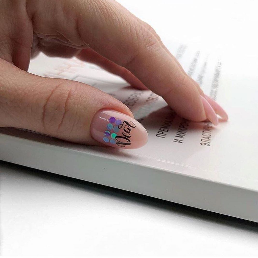 - Украшениями с блестками на паре ногтей.