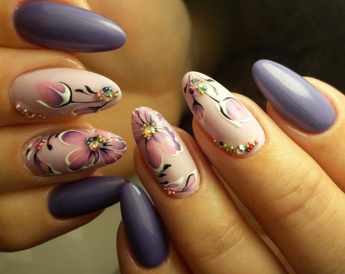 Флористика придает маникюру особой нежности и женственности. Главное, чтобы цветы гармонично вписывались в дизайн и не занимали собой все пространство. Чтобы понравиться мужчине, для элегантного образа достаточно 1-2 принтов на женских ноготках.