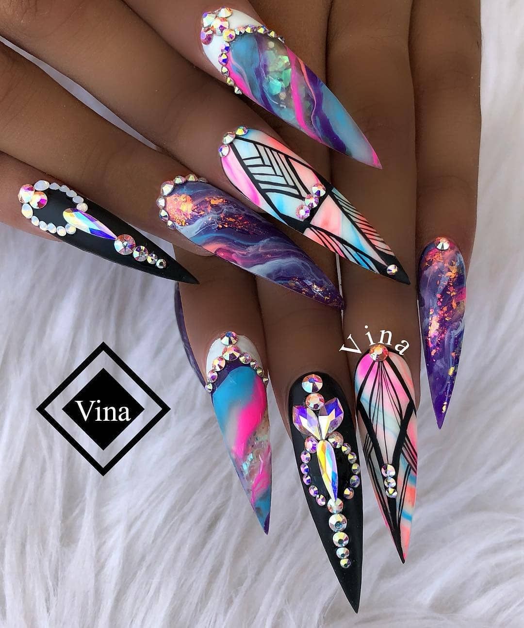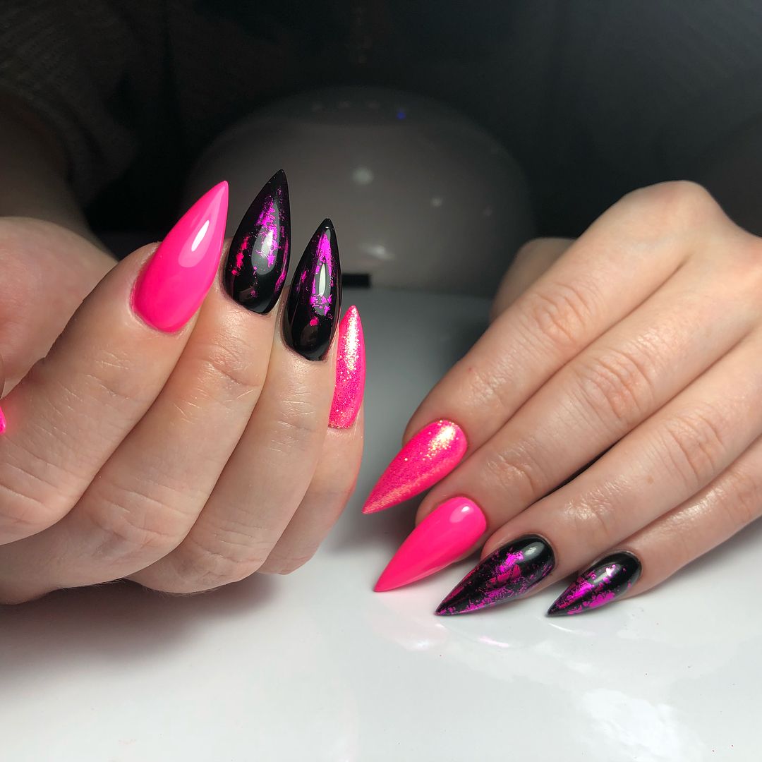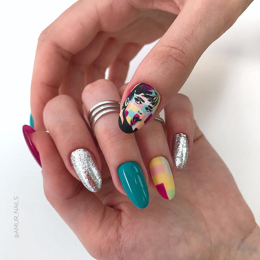 Этот вид дизайна снова на пике. Модницам хочется не только женственности, но и протеста. Уместить два в одном поможет маникюр в стиле разные руки. Кстати, вы можете оформить одну руку в пастельном цвете, а другую в ярком. Вариантов масса, просто проявите фантазию.