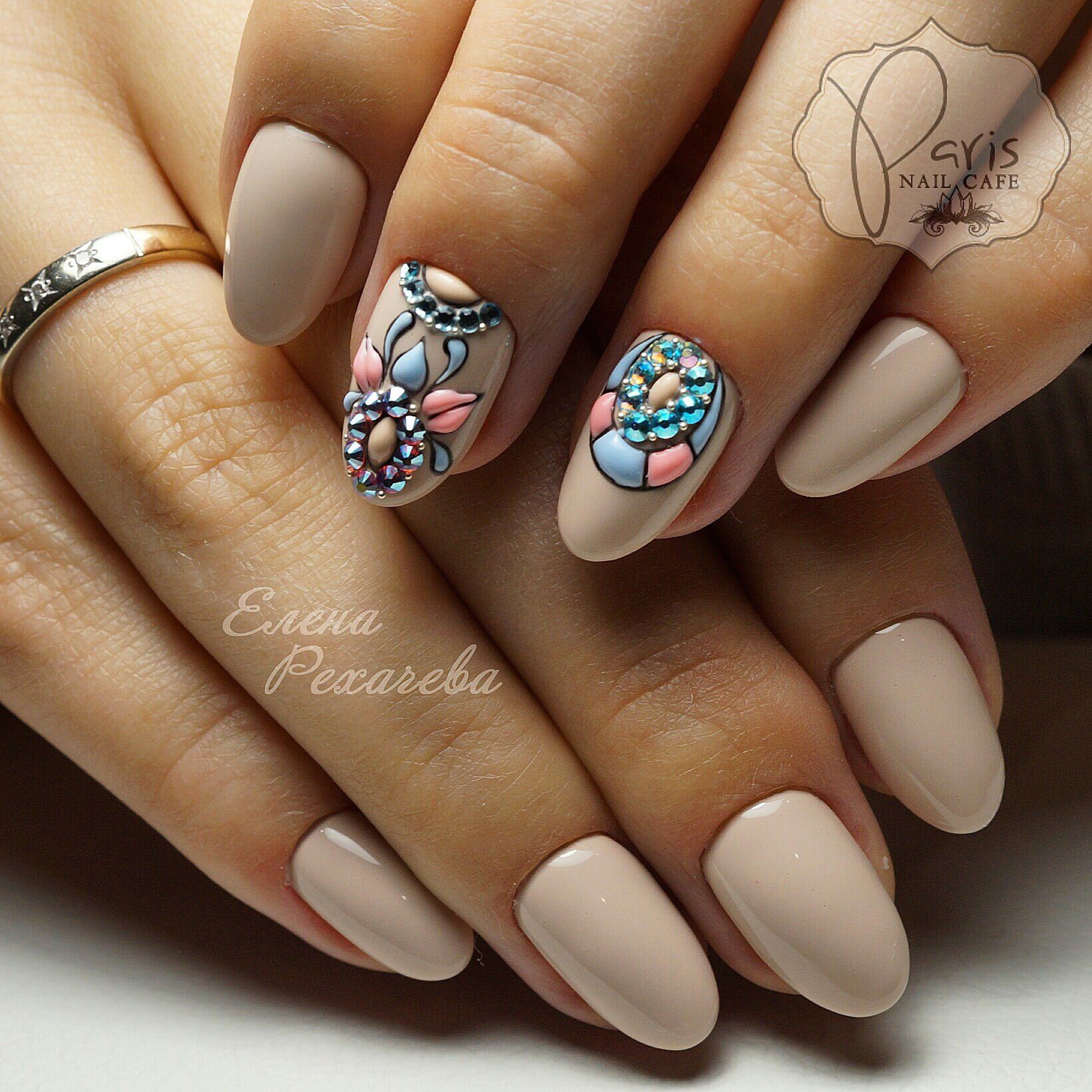 Некоторые модницы полагают, что стразы — пережиток прошлого. Они очень простят и удешевляют маникюр. Это не так. Привычный декор преображается и больше соответствует времени. Теперь не принято лепить камни на каждый ноготок. Достаточно сделать акцент на одном, например, выложив интересный рисунок. Если стразы будут на каждом ногте, их размер должен быть минимальным.
