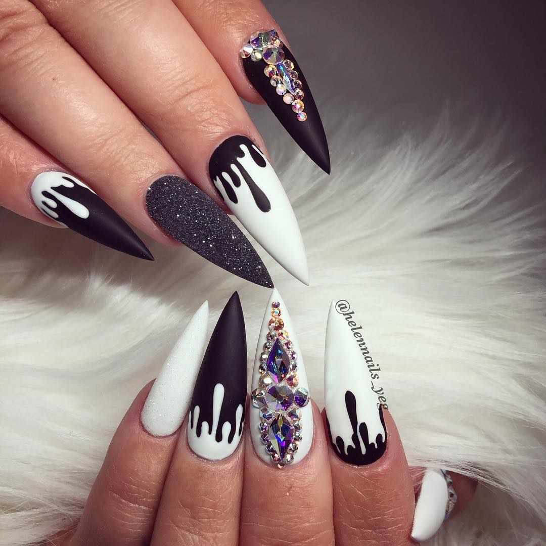 Пожалуй, самый смелый маникюр сезона придумали для дефиле Gucci: длиннющие наращенные ногти моделей и так сгибались под собственной тяжестью, плюс их еще украсили стразами разного диаметра. Имей в виду, это очень непрактичный вариант. Но если хочешь кого-то удивить или собрать лишнюю сотню лайков в инстаграме — сработает безотказно.