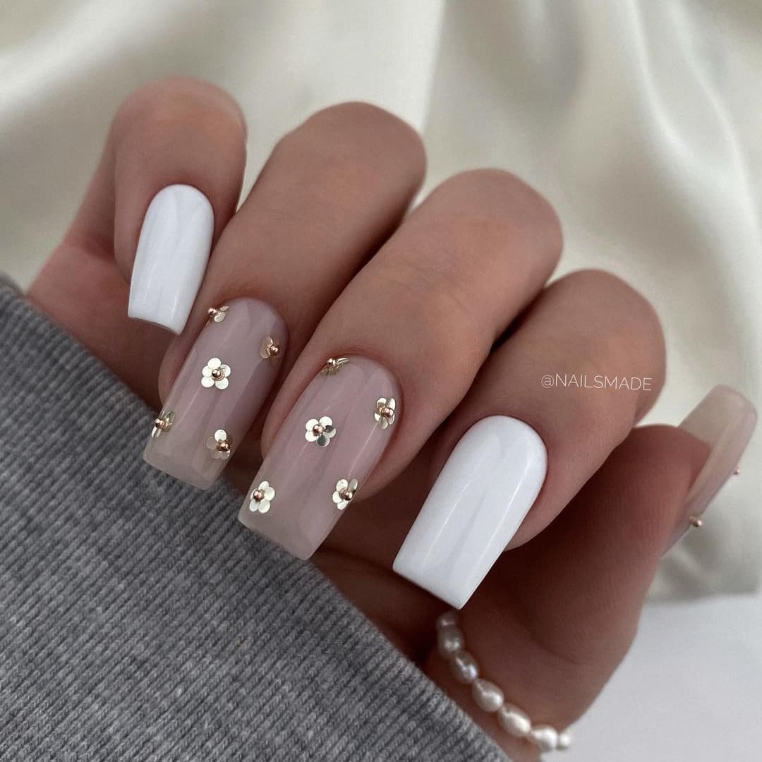 Белый цвет часто используют в качестве дополнения к таким основным оттенкам гель-лака как красный, черный, синий, зеленый. Белый позволяет создать визуальный объем, выполнить рисунки, геометрию, флористику и другие простые узоры.