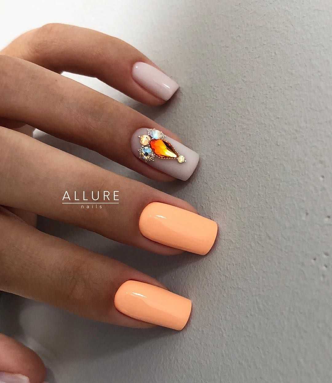 #2 Оранжевый маникюр с белым и со стразами