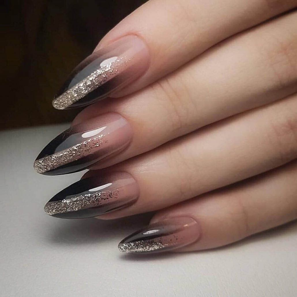Кроме того, всегда можно дополнить лунный маникюр «negative space» глиттером, фольгой, втиркой и другими изящными украшениями. Конечно, применение блестков несколько противоречит основной идее «голого» маникюра. Но дизайнеры учитывают, что перемены не могут произойти сразу и навсегда. И дают возможность постепенного перехода к полной реализации нового тренда.