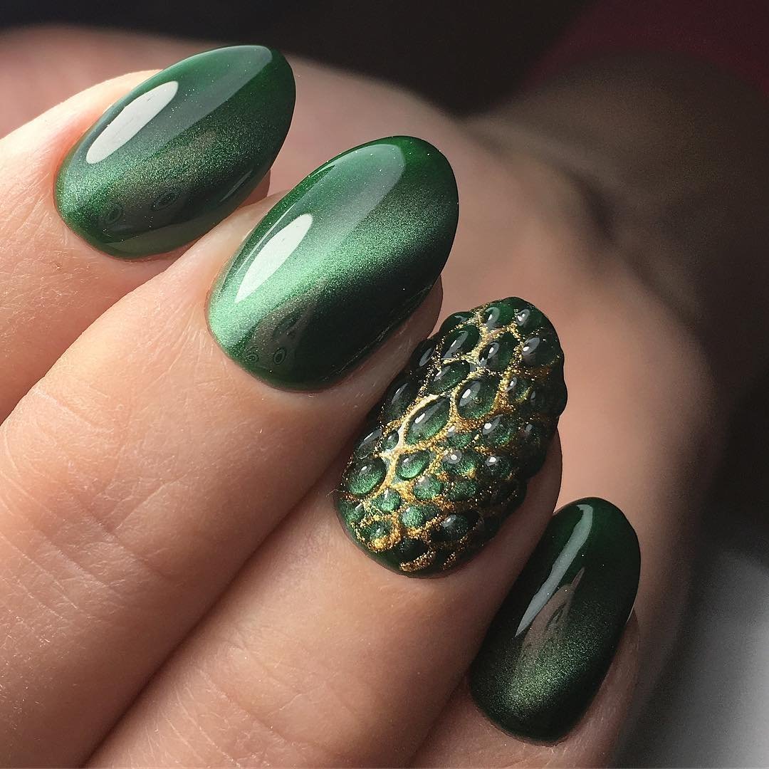 В праздничном маникюре 2024 года зеленый цвет будет обязательным атрибутом. Ведь именно зеленый является воплощением удачи, процветания и здоровья, он символизирует рост и развитие, а также естественную красоту.