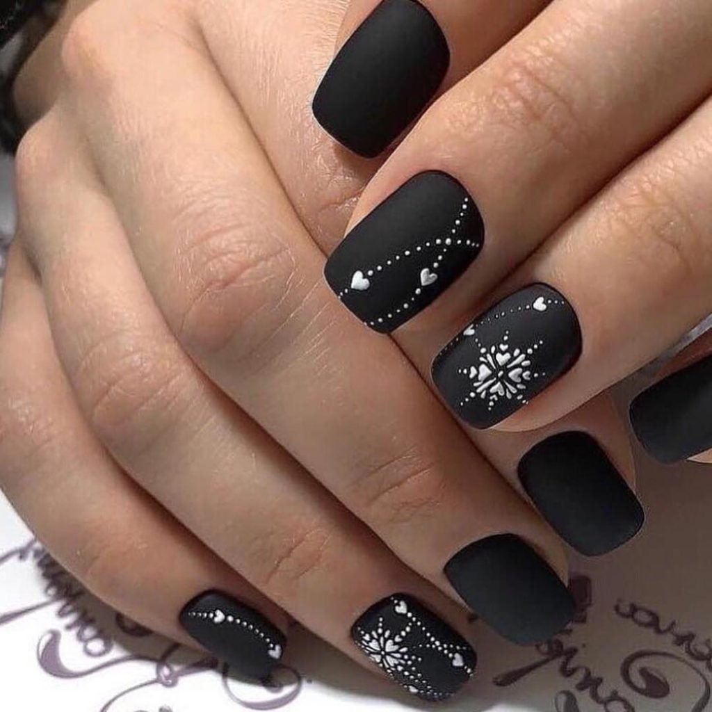 Черный цвет никогда не выходит из моды и всегда выглядит элегантно и стильно. В новогоднюю ночь черный маникюр будет прекрасным выбором, особенно если вам нужно создать загадочный и сияющий образ.