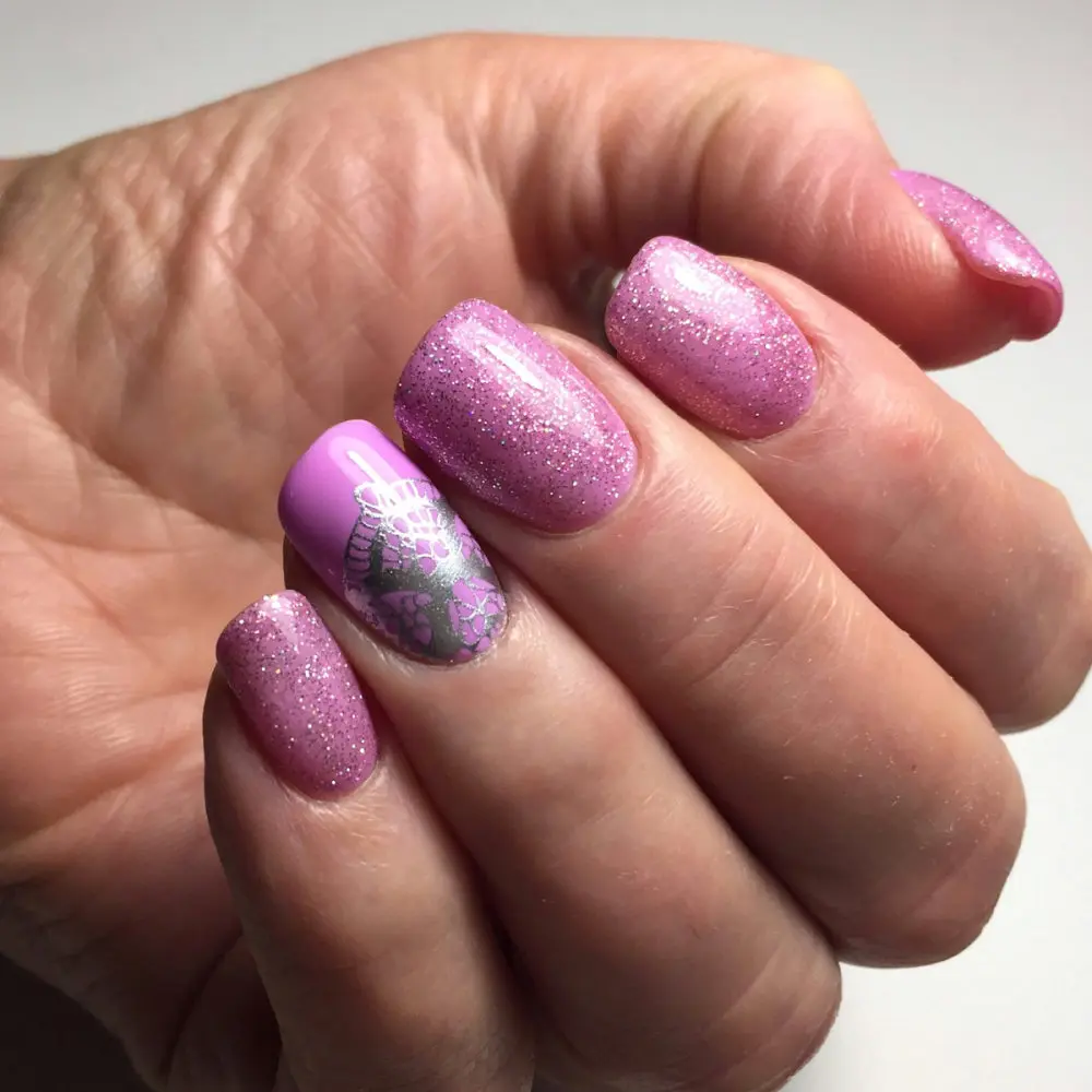 Розовый маникюр с блестками для благородного дизайна 2023-2024