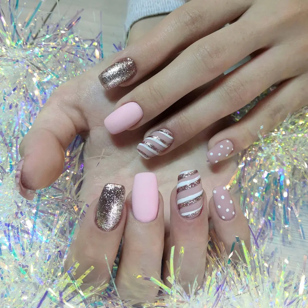 Если вы хотите более простой дизайн, то можете выбрать один пастельный цвет и добавить к нему блестки. Это может быть как прозрачный лак с блестками, так и блестки, нанесенные поверх пастельного лака.