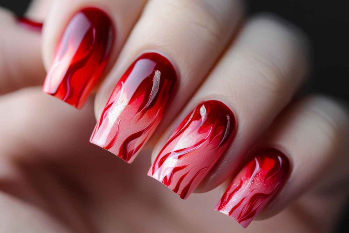 Шестое место по-популярности, занимает красный дизайн с градиентом. Потрясающе красиво смотрятся нежные переходы из красного цвета в белый, из ярко-красного в розово-оранжевый, из темно-красного в ярко-белый, из фиолетового в красно-алый, или из ярко-красного в темно-красный. Все они по-своему хороши.
