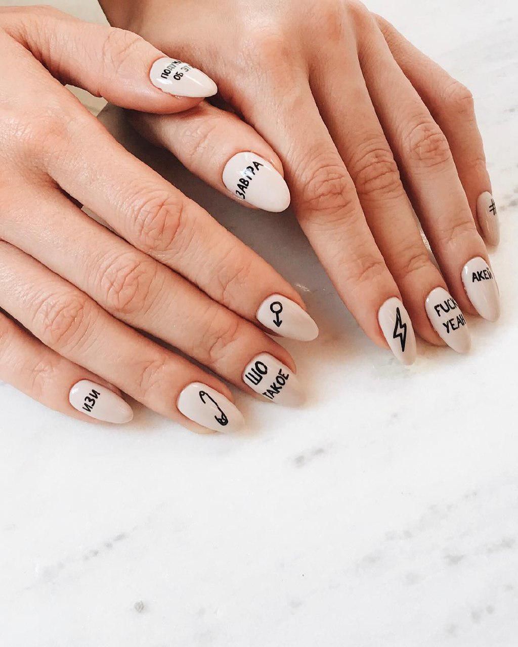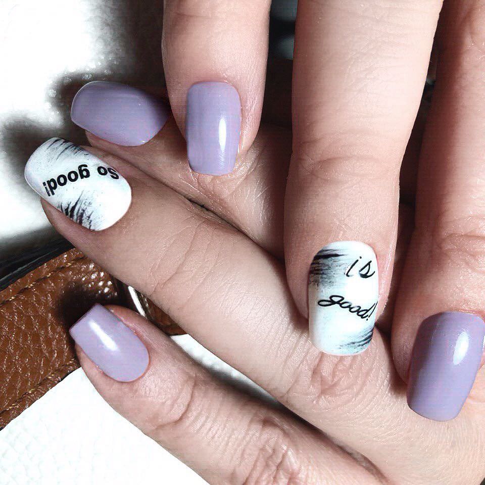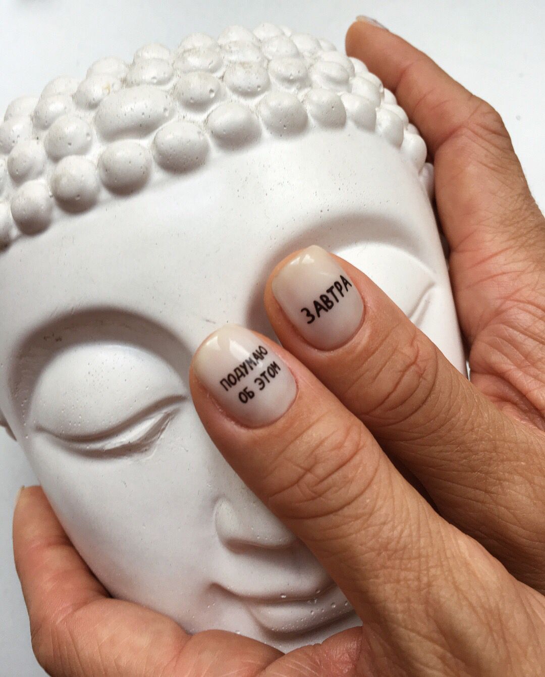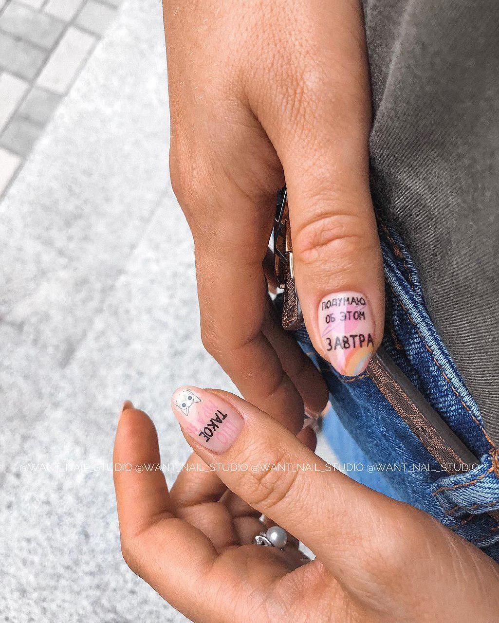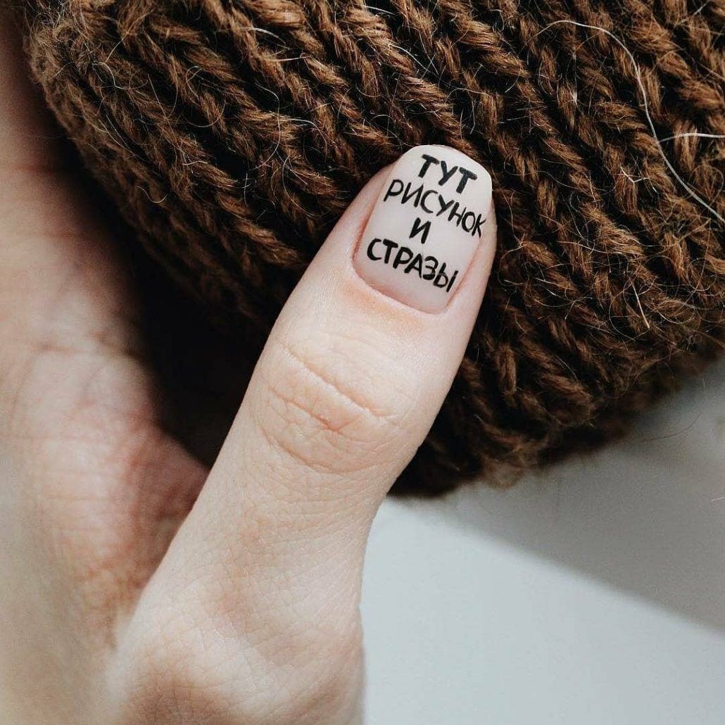 Модный маникюр с надписями на короткие ногти в 2022 году
