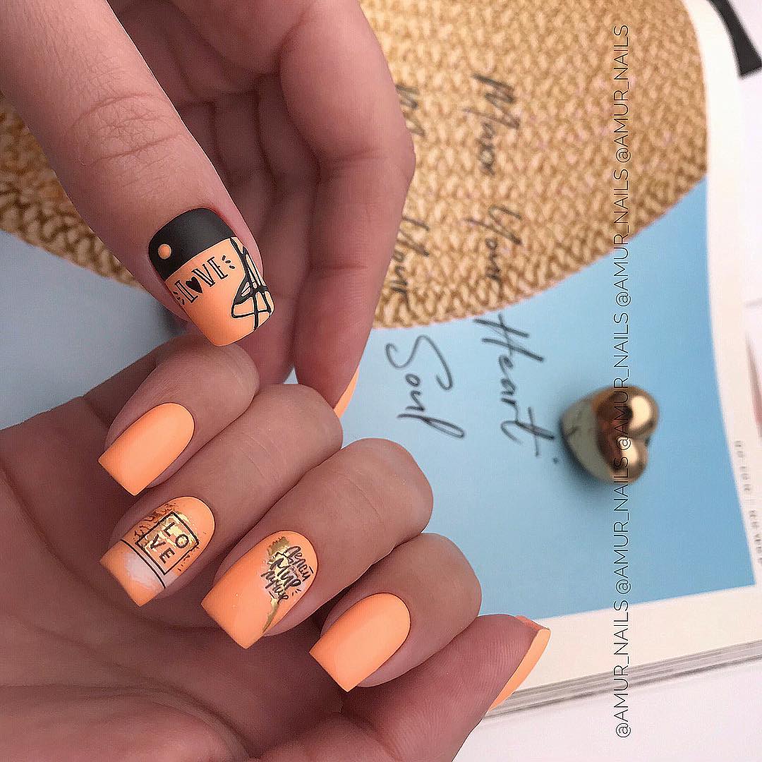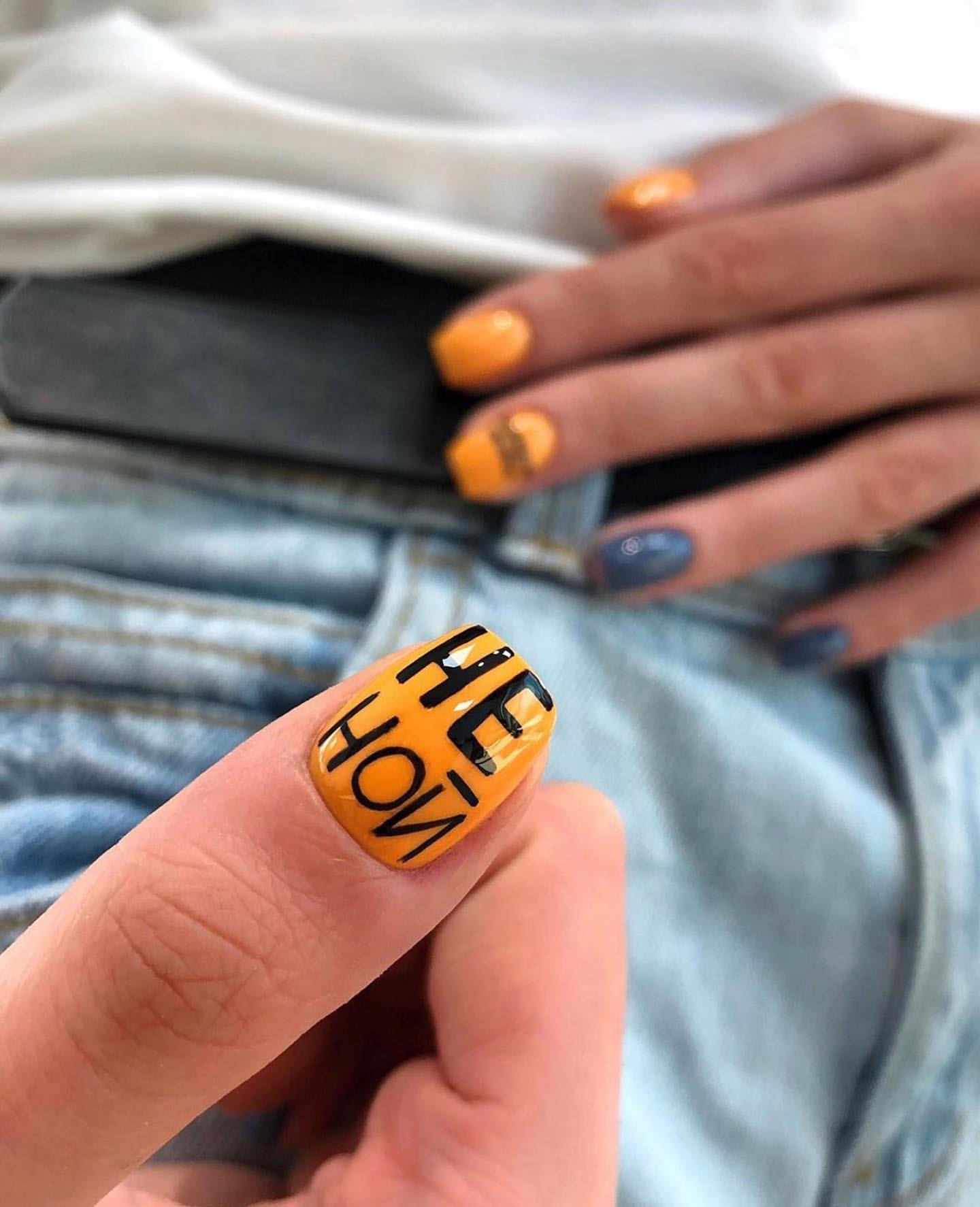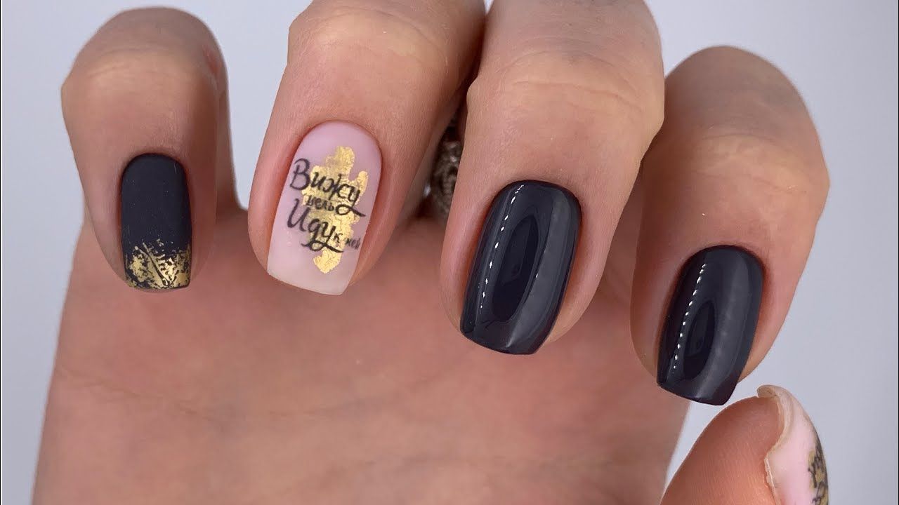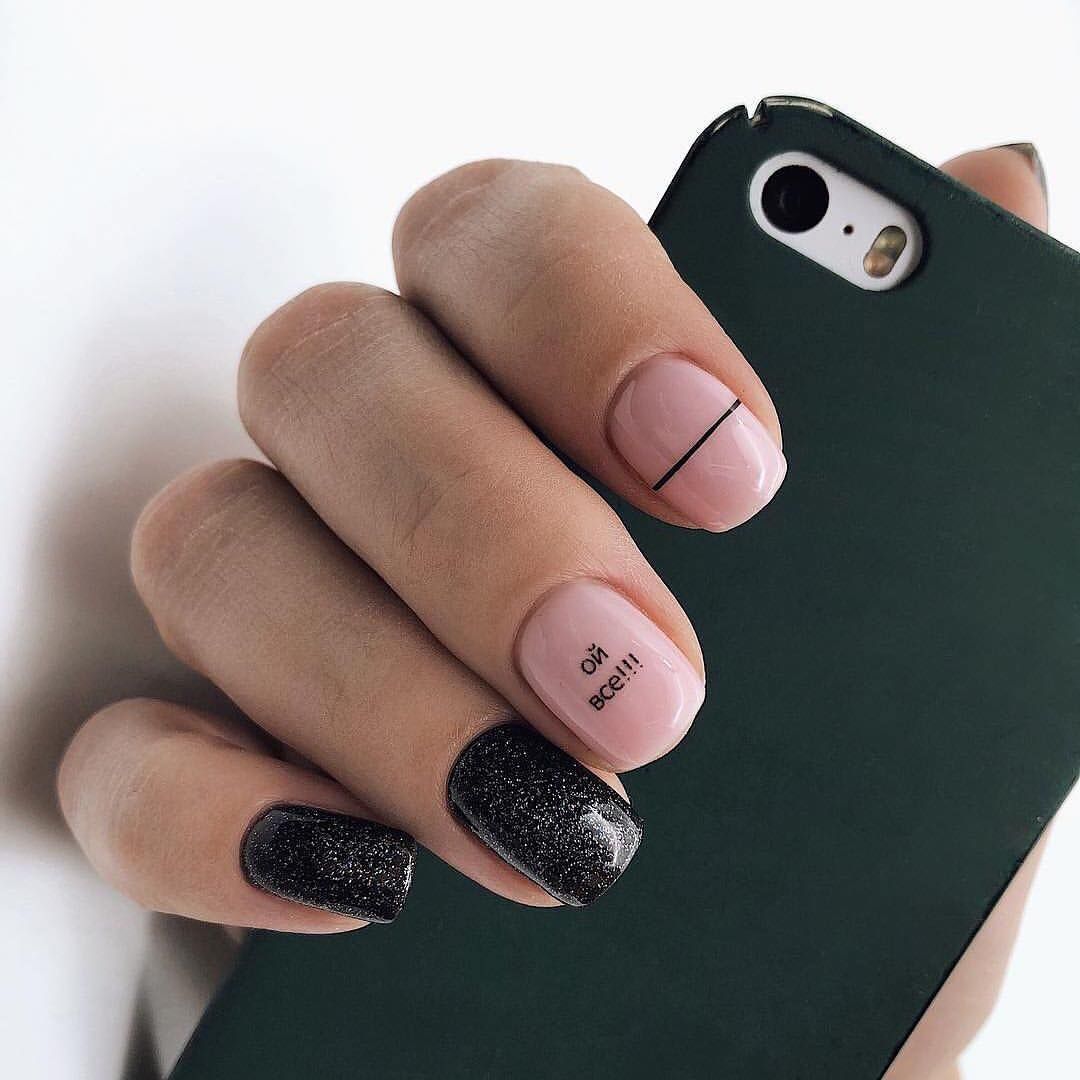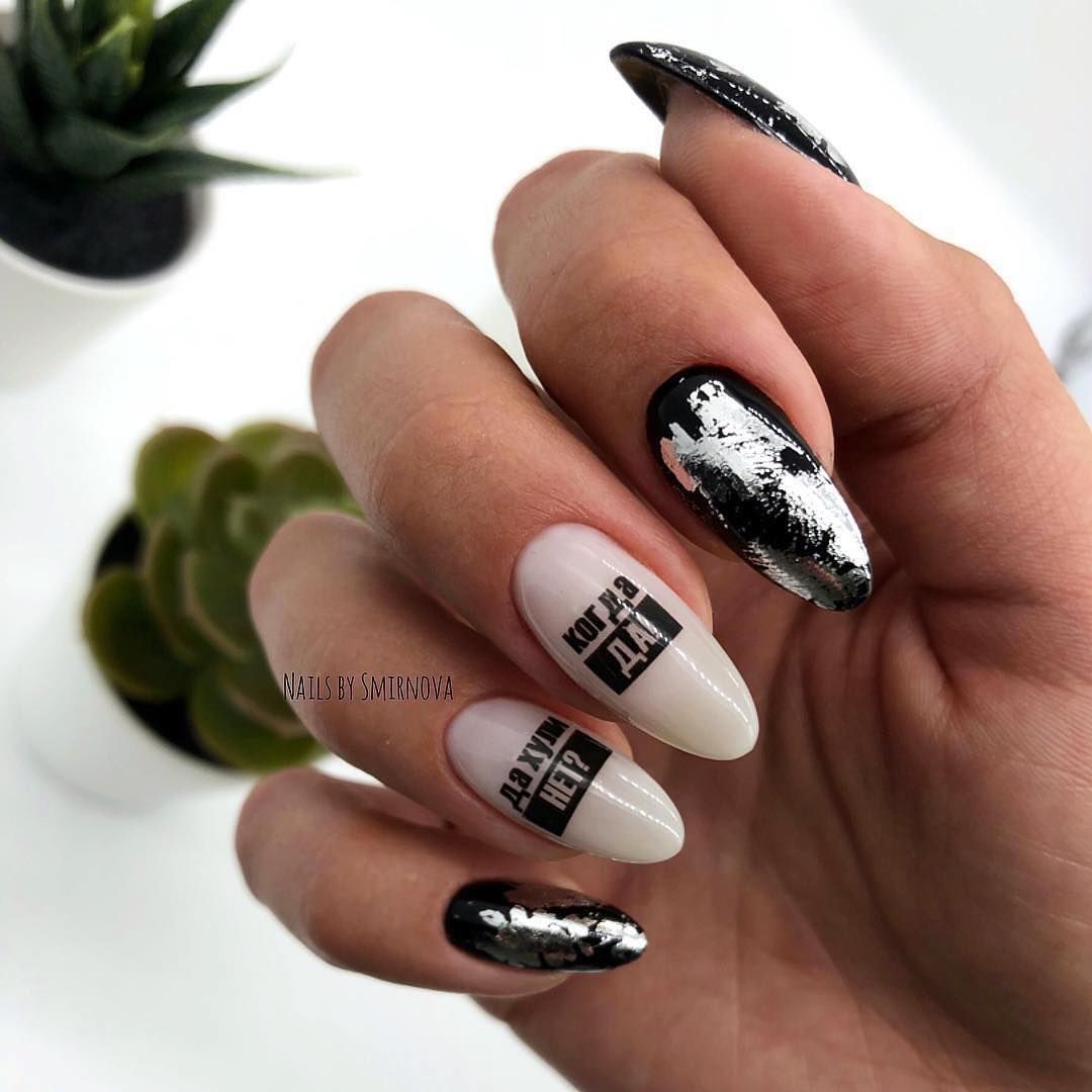 Модный маникюр с надписями на короткие ногти в 2022 году
