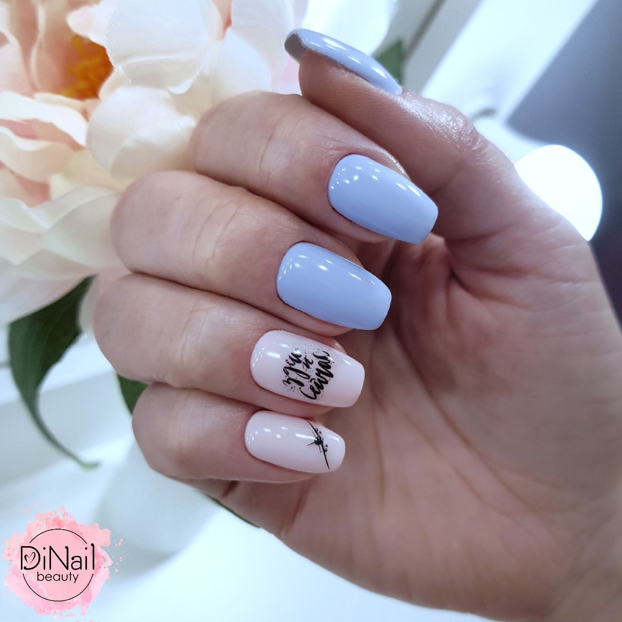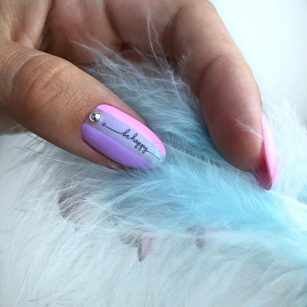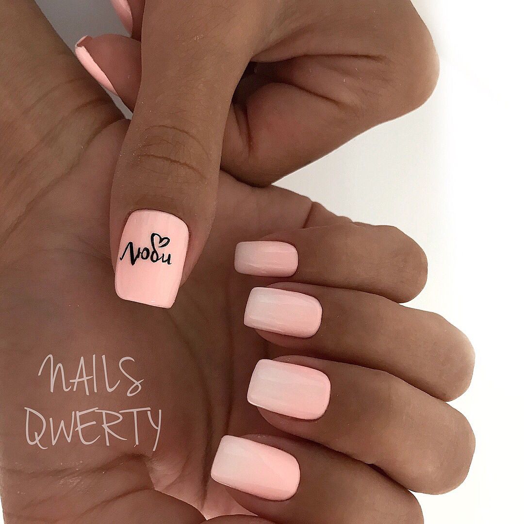 Минимализм был и всегда остается в тренде. Покрыв ногти нежным однотоном, использовав 1-2 надписи, можно получить довольно неплохой результат.