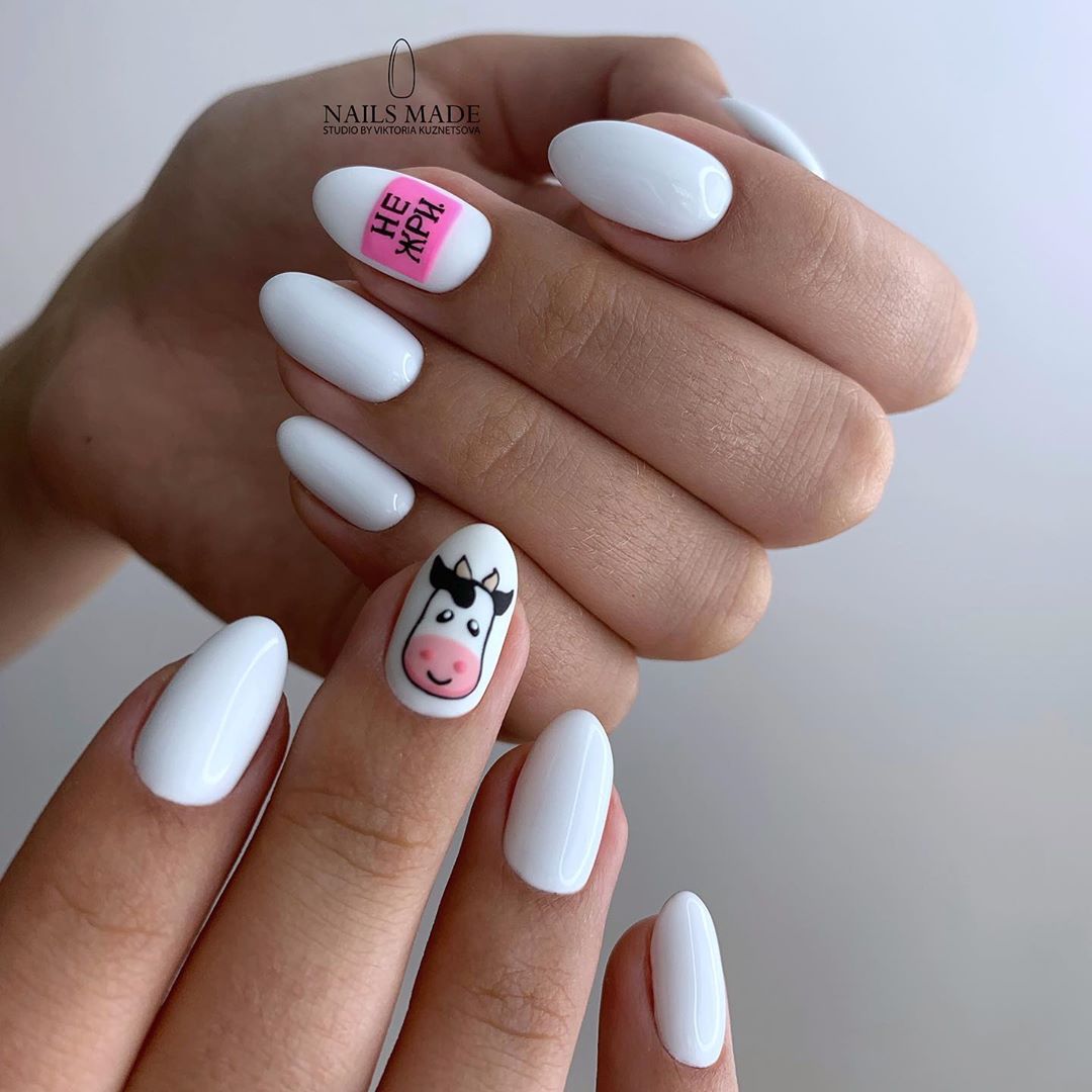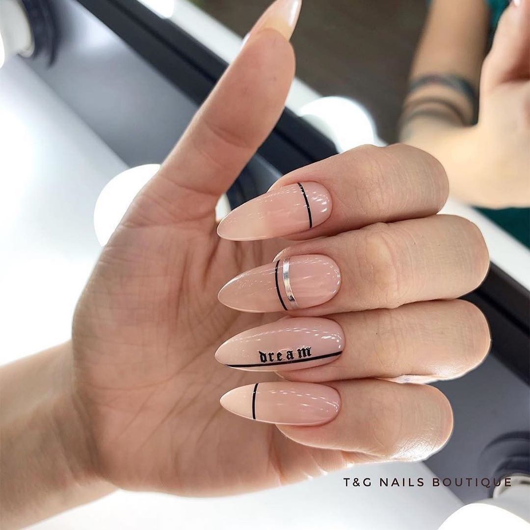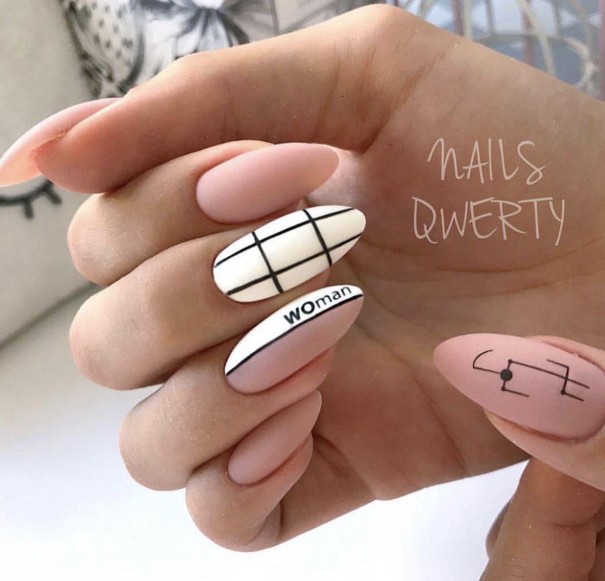 Минимализм был и всегда остается в тренде. Покрыв ногти нежным однотоном, использовав 1-2 надписи, можно получить довольно неплохой результат.