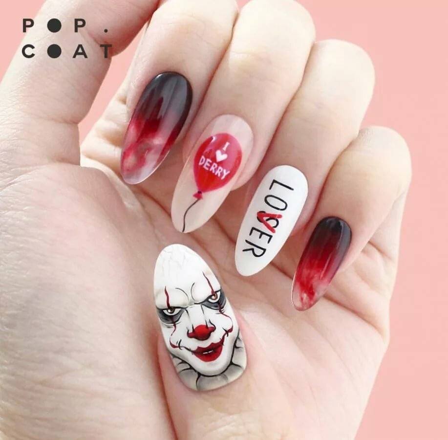 - для тех, кто желает выразить свое настроение или мироощущение на ноготках, мастера предлагают уникальные идеи. И здесь ограничений нет. Можно все: от ностальгии по детству, с мультяшными и сказочными персонажами, до выразительных надписей и графики в стиле настенных граффити.