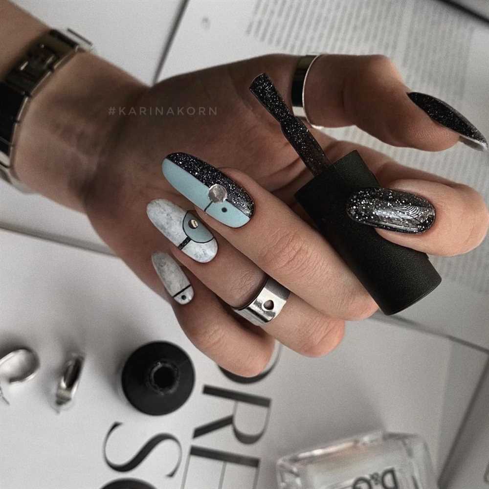 Для светоотражающего маникюра часто используются специальные лаки, которые содержат миниатюрный блестящий порошок. Этот порошок создает эффект отражения и придает ногтям уникальный блеск. Также, для создания светоотражающего дизайна можно использовать стразы, которые придают маникюру дополнительную яркость и изысканность.