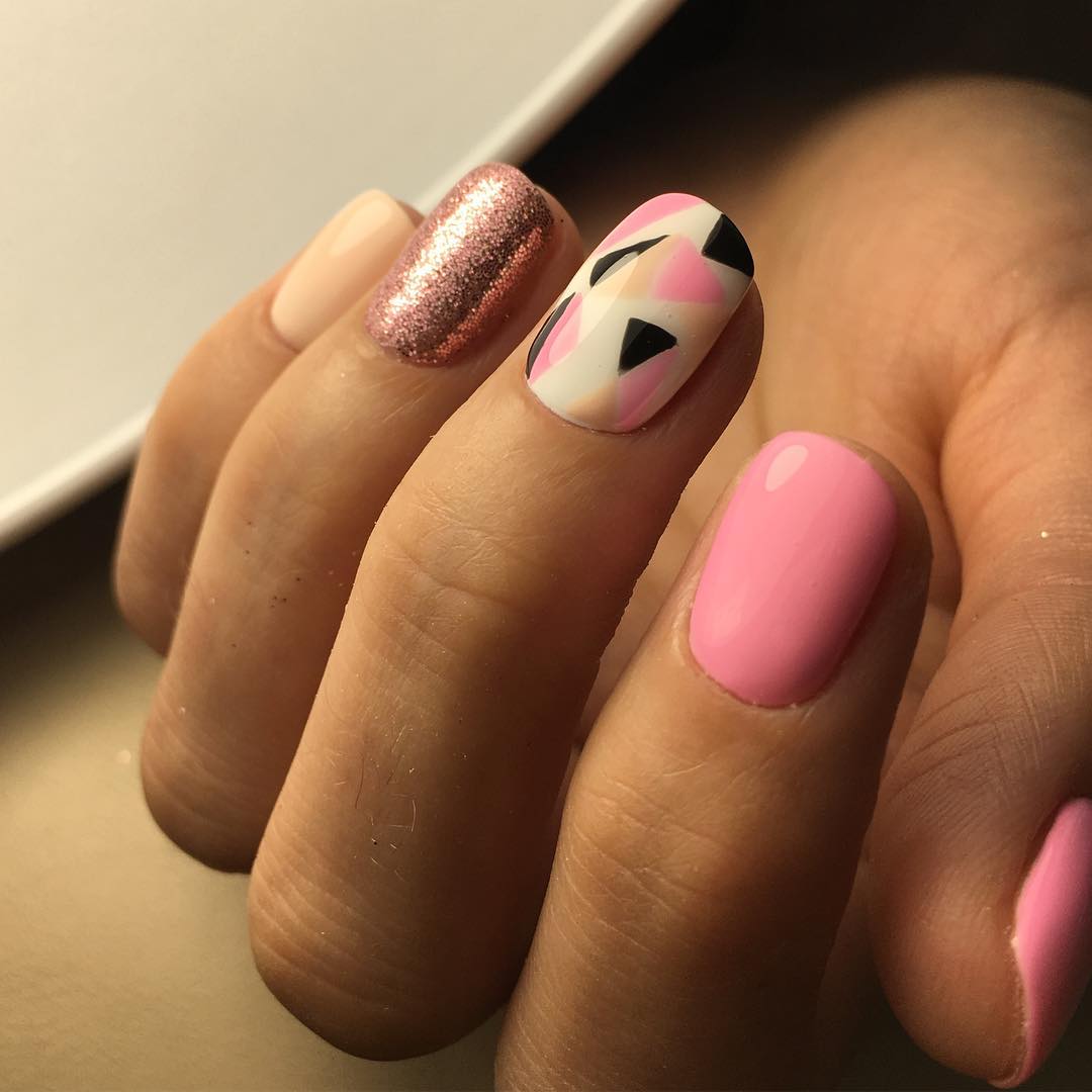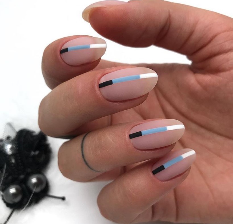 Геометрические узоры вообще прекрасно вписываются в концепцию минималистичного маникюра. Важно ограничиться небольшим количеством оттенком – трех будет более чем достаточно