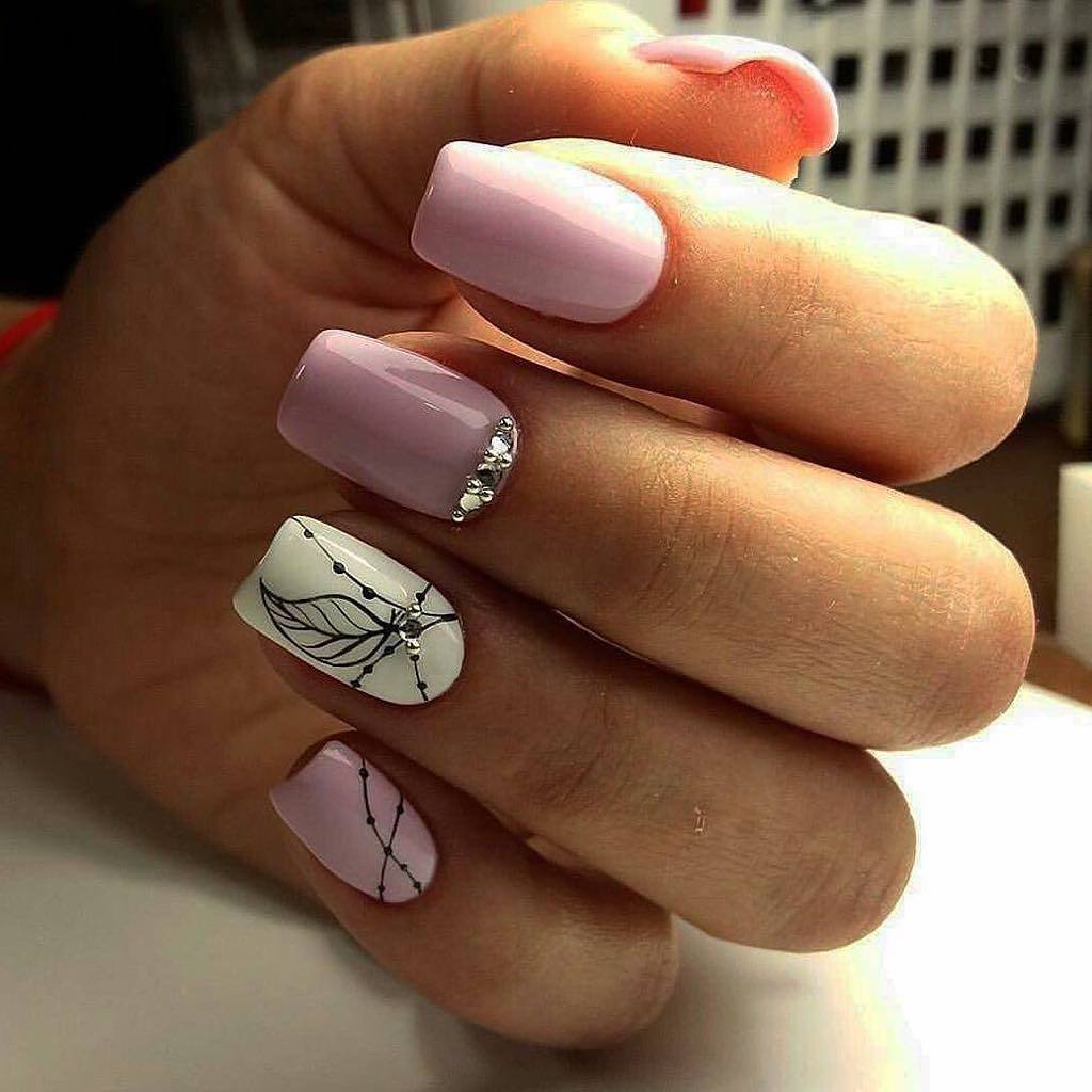 Красиво – не значит ярко и много. Напротив, для создания привлекательного маникюра достаточно 1-2 оттенков лака и легкого принта.