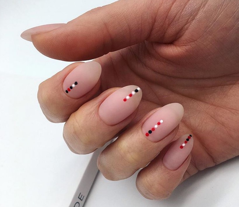 Хочешь эффектный, но простой в исполнении маникюр? Тогда укрась ногти контрастными точками одного или двух цветов. Количество декора – на твой вкус, даже одна точка придаст дизайну выразительность.
