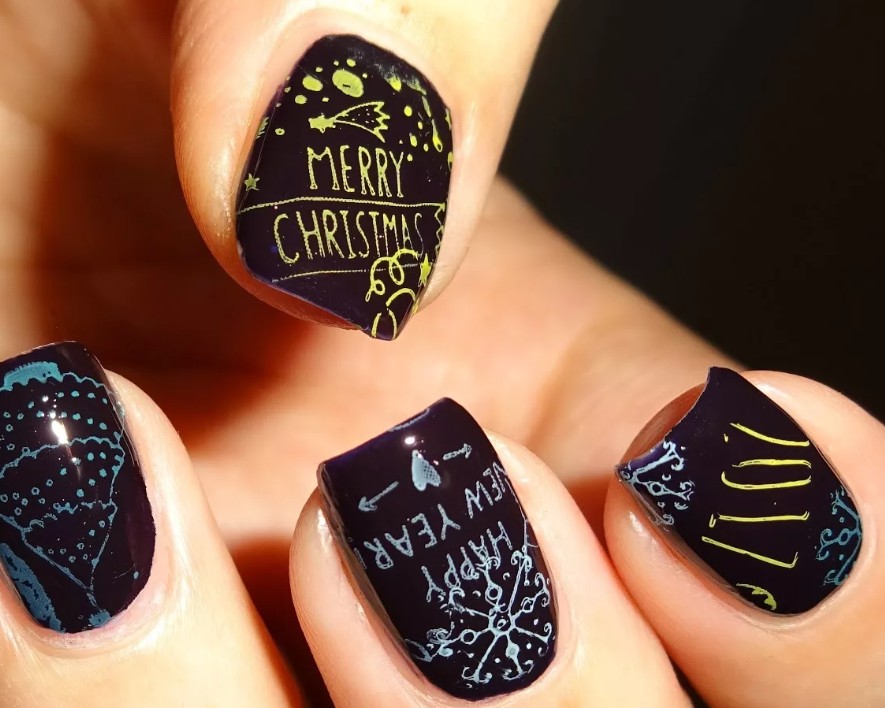 С ним в новогодний вечер все внимание окружающих будет сосредоточено на ваших ручках. Для эффектности и легкого декорирования можно не использовать рисунки, а просто украсить поверхность блестками в форме звездочек
